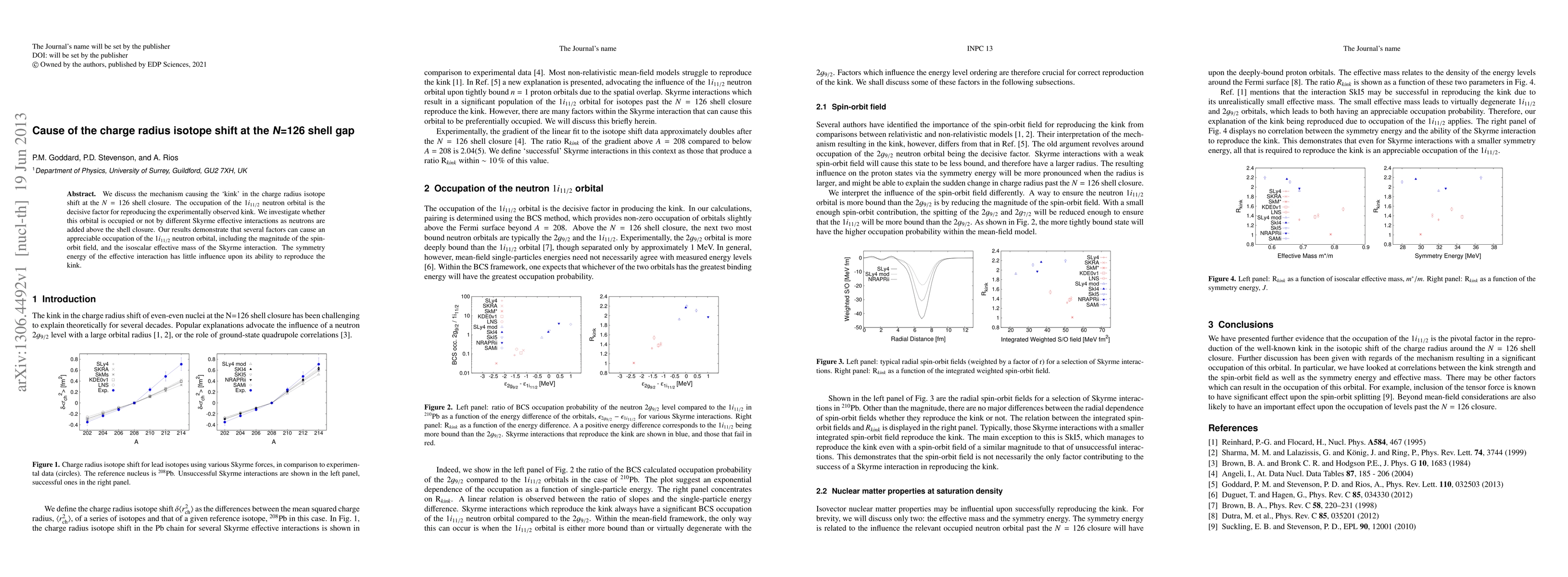 We discuss the mechanism causing the `kink' in the charge radius isotope shift at the N=126 shell closure. The occupation of the 1$i_{11/2}$ neutron orbital is the decisive factor for reproducing the experimentally observed kink. We investigate whether this orbital is occupied or not by different Skyrme effective interactions as neutrons are added above the shell closure. Our results demonstrate that several factors can cause an appreciable occupation of the 1$i_{11/2}$ neutron orbital, including the magnitude of the spin-orbit field, and the isoscalar effective mass of the Skyrme interaction. The symmetry energy of the effective interaction has little influence upon its ability to reproduce the kink.