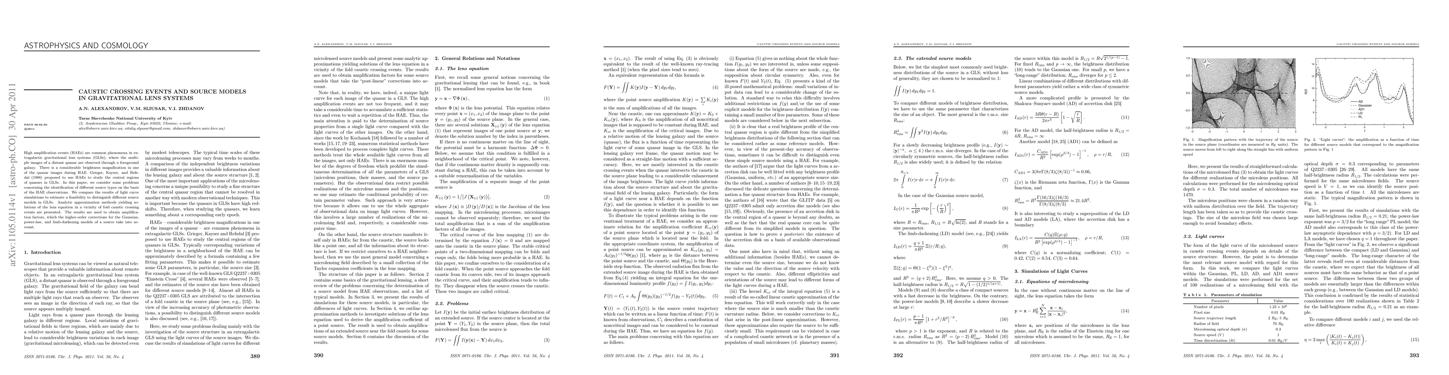 This paper investigates high amplification events (HAEs) in gravitational lens systems (GLSs) to study quasar central regions, comparing light curve simulations to distinguish source models. Analytic methods for lens equations near caustic crossing events yield amplification factors, considering higher-order corrections for various source models.
