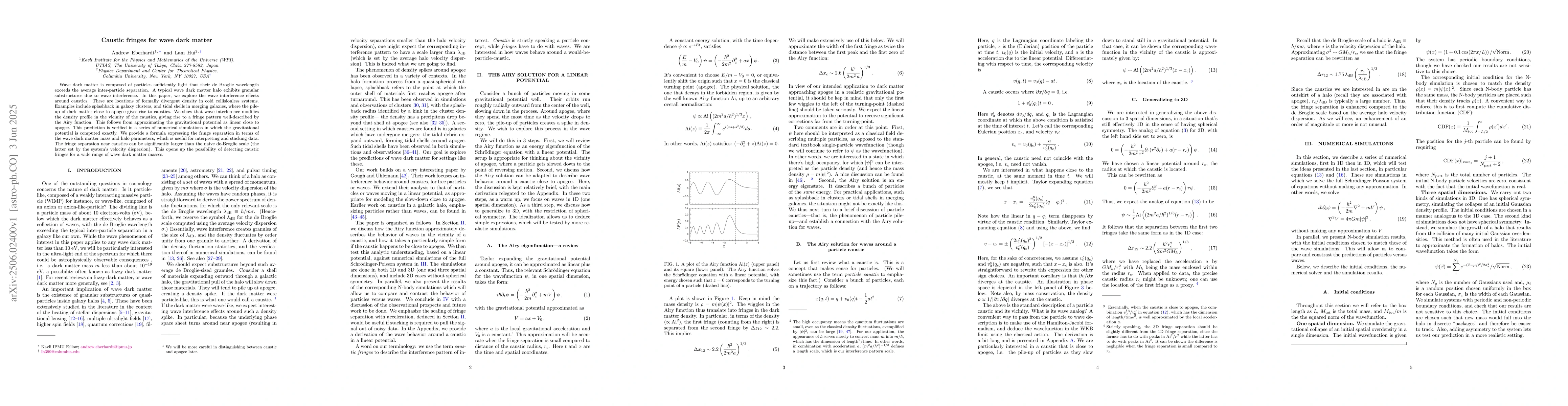 Researchers found that wave dark matter's caustics exhibit a fringe pattern due to interference effects, which can be detected and interpreted using a formula for fringe separation.