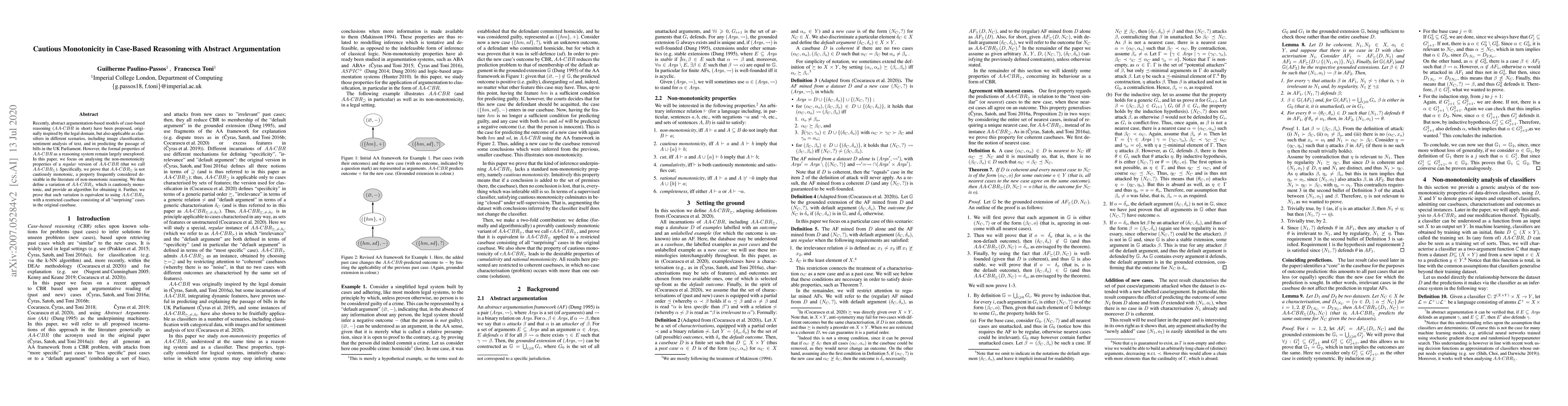 This paper investigates the non-monotonicity properties of abstract argumentation-based case-based reasoning ($AA{\text -}CBR_{\succeq}$), demonstrating its lack of cautious monotonicity. It proposes a modified version that is cautiously monotonic and provides an algorithm for its implementation.