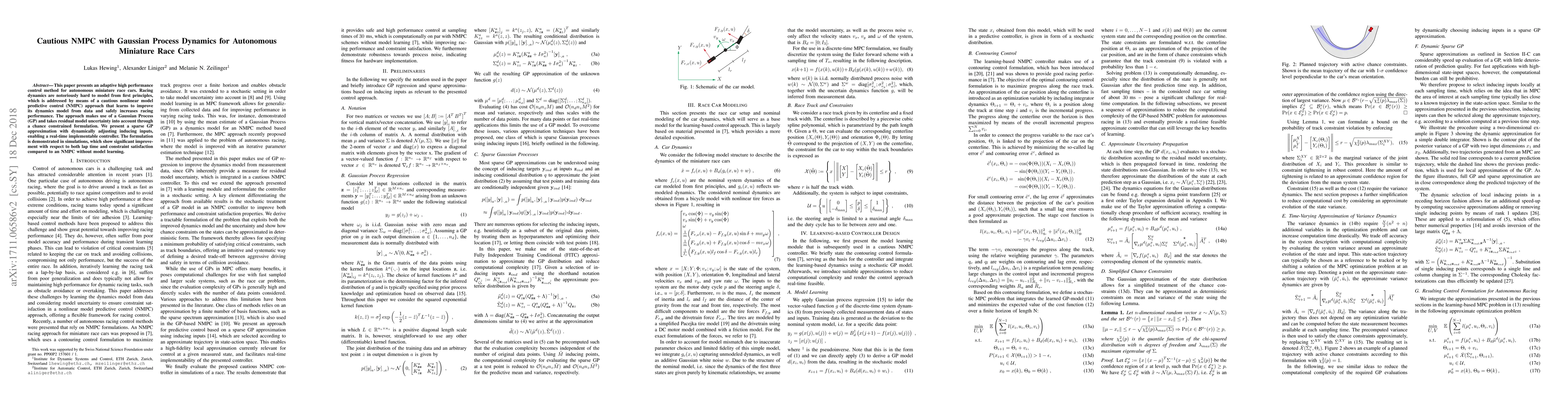 This paper proposes a cautious nonlinear model predictive control (NMPC) method using Gaussian Process dynamics for autonomous miniature race cars, which adaptively improves its model from data and enhances performance while considering residual model uncertainty. The approach demonstrates significant improvements in lap time and constraint satisfaction through simulations.