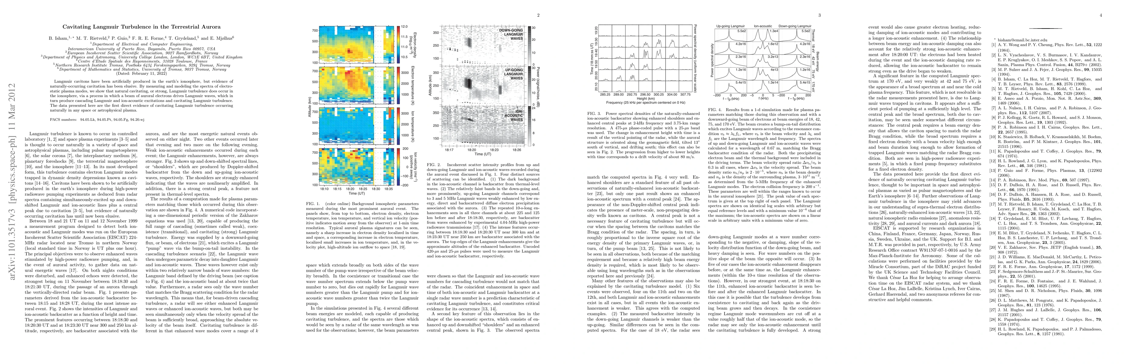 This study provides the first direct evidence of naturally occurring cavitating Langmuir turbulence in the terrestrial ionosphere, driven by auroral electron beams, which generate Langmuir and ion-acoustic excitations through cascading processes. This discovery marks a significant finding in space and astrophysical plasma research.