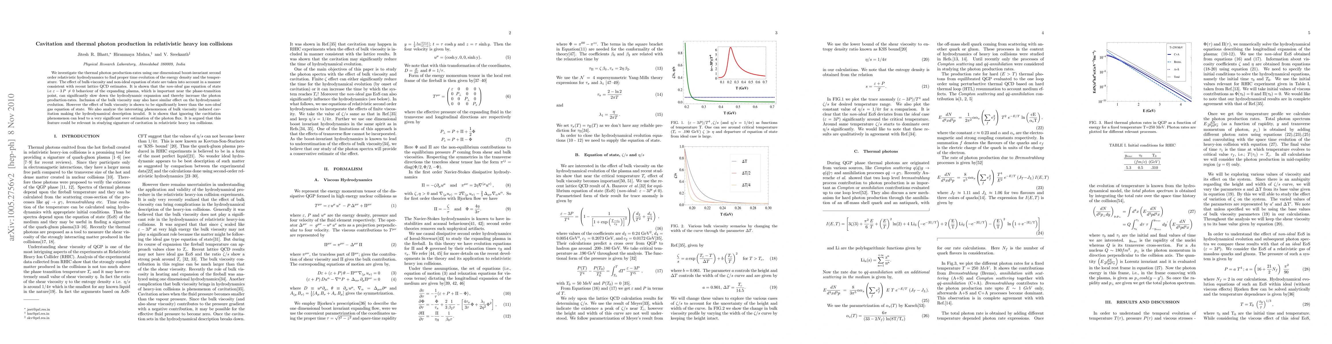 This paper examines thermal photon production in relativistic heavy ion collisions using boost-invariant hydrodynamics, finding that non-ideal gas behavior and bulk viscosity can significantly affect photon rates. It also highlights the importance of considering cavitation phenomena to avoid overestimating photon flux.