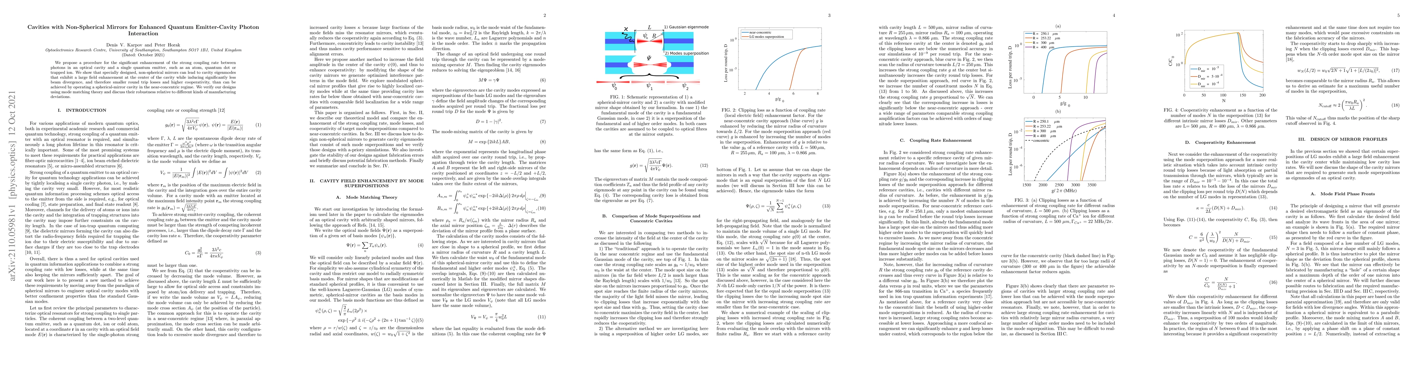 This paper proposes using non-spherical mirrors to enhance the interaction between photons and quantum emitters in optical cavities, achieving higher cooperativity and lower losses compared to spherical-mirror cavities. The design is validated through mode matching theory and evaluated for robustness against manufacturing variations.