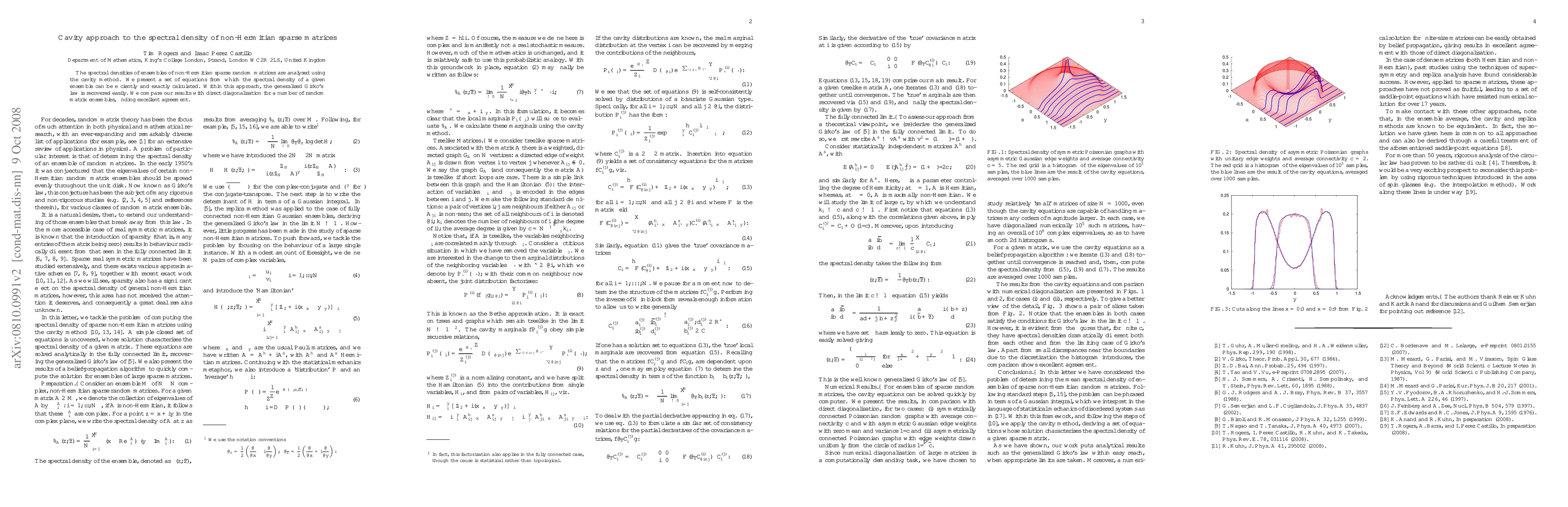 The paper presents a novel application of the cavity method to sparse non-Hermitian random matrices, providing a set of equations for exact spectral density calculation and recovering the generalized Girko's law.