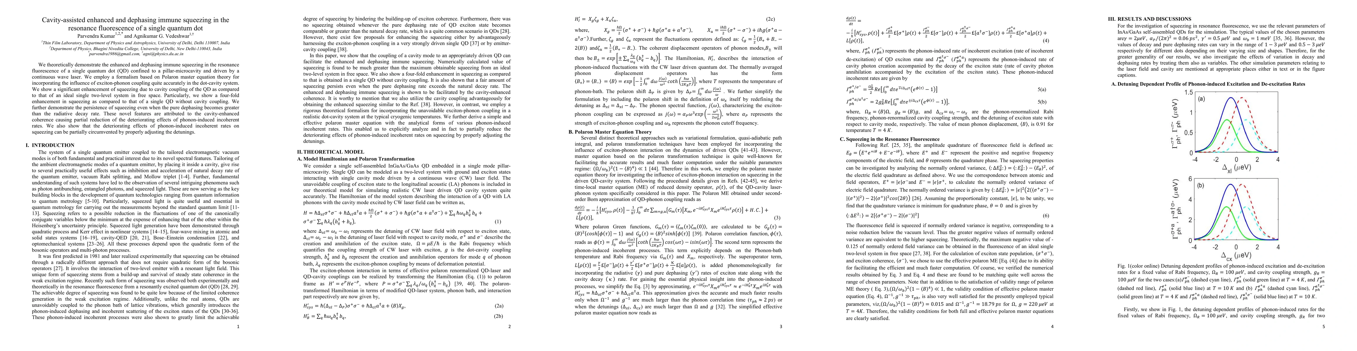 This paper theoretically demonstrates enhanced and dephasing immune squeezing in the resonance fluorescence of a single quantum dot in a pillar-microcavity, showing a four-fold increase compared to free space, and persistence of squeezing despite high dephasing rates due to cavity-enhanced coherence.
