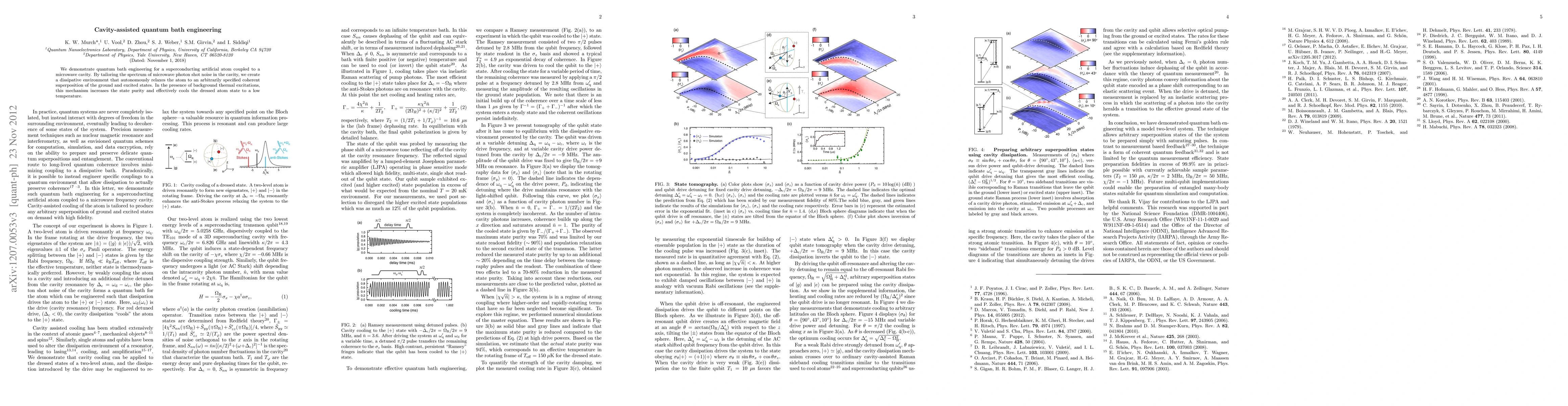 This paper presents a method for quantum bath engineering in a superconducting artificial atom linked to a microwave cavity, where tailored cavity photon noise autonomously relaxes the atom to a specified coherent superposition, enhancing state purity and cooling the dressed atom state in thermal conditions.