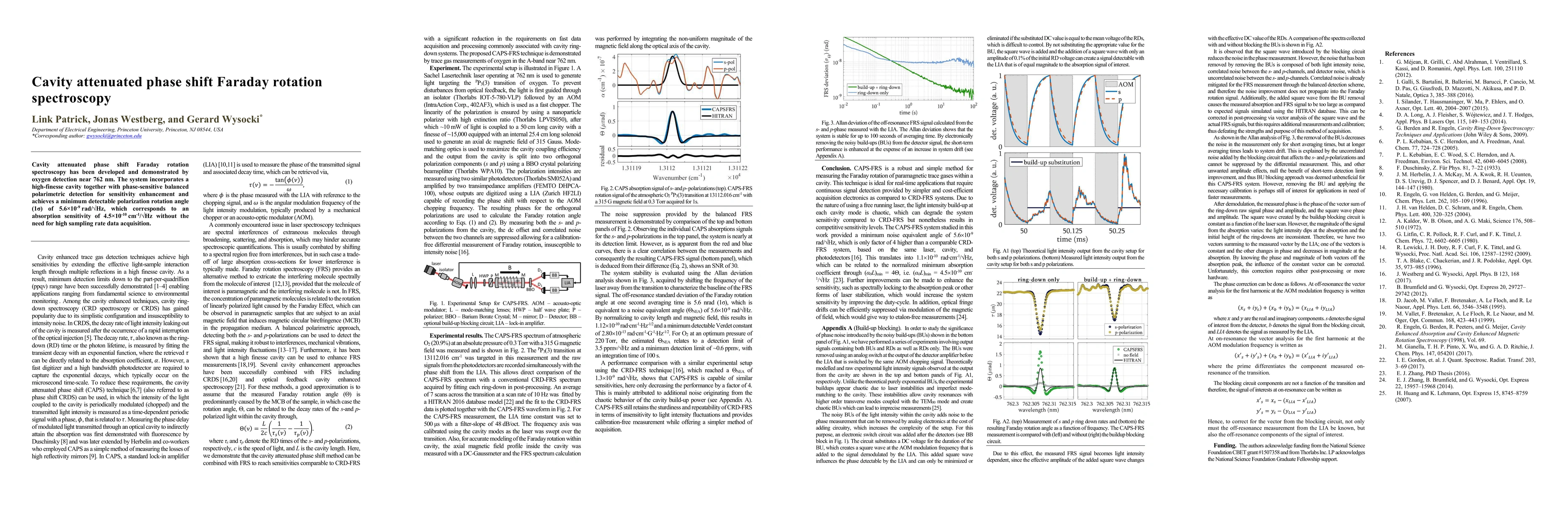This paper presents a novel cavity attenuated phase shift Faraday rotation spectroscopy technique for oxygen detection near 762 nm, achieving a sensitivity of $5.6\times 10^{-9}$ rad/$\surd$Hz with high-finesse cavity and balanced polarimetric detection, without requiring high sampling rates.