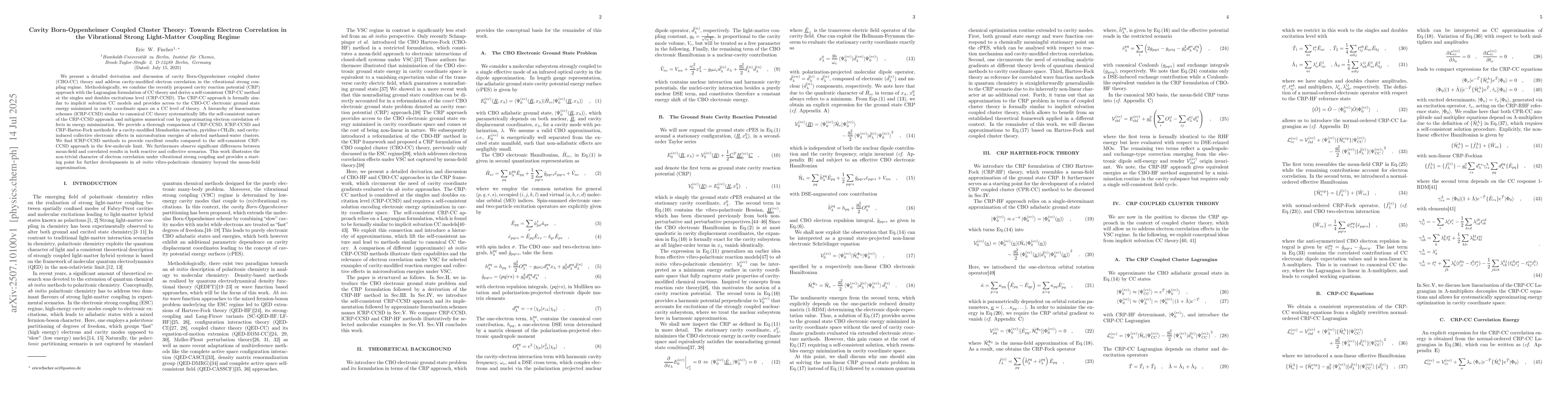 We present a detailed derivation and discussion of cavity Born-Oppenheimer coupled cluster (CBO-CC) theory and address cavity-modified electron correlation in the vibrational strong coupling regime. Methodologically, we combine the recently proposed cavity reaction potential (CRP) approach with the Lagrangian formulation of CC theory and derive a self-consistent CRP-CC method at the singles and doubles excitations level (CRP-CCSD). The CRP-CC approach is formally similar to implicit solvation CC models and provides access to the CBO-CC electronic ground state energy minimized in cavity coordinate space on a CC level of theory. A hierarchy of linearisation schemes (lCRP-CCSD) similar to canonical CC theory systematically lifts the self-consistent nature of the CRP-CCSD approach and mitigates numerical cost by approximating electron correlation effects in energy minimization. We provide a thorough comparison of CRP-CCSD, lCRP-CCSD and CRP-Hartee-Fock methods for a cavity-modified Menshutkin reaction, pyridine$+$CH$_3$Br, and cavity-induced collective electronic effects in microsolvation energies of selected methanol-water clusters. We find lCRP-CCSD methods to provide excellent results compared to the self-consistent CRP-CCSD approach in the few-molecule limit. We furthermore observe significant differences between mean-field and correlated results in both reactive and collective scenarios. Our work emphasizes the non-trivial character of electron correlation under vibrational strong coupling and provides a starting point for further developments in ab initio vibro-polaritonic chemistry beyond the mean-field approximation.