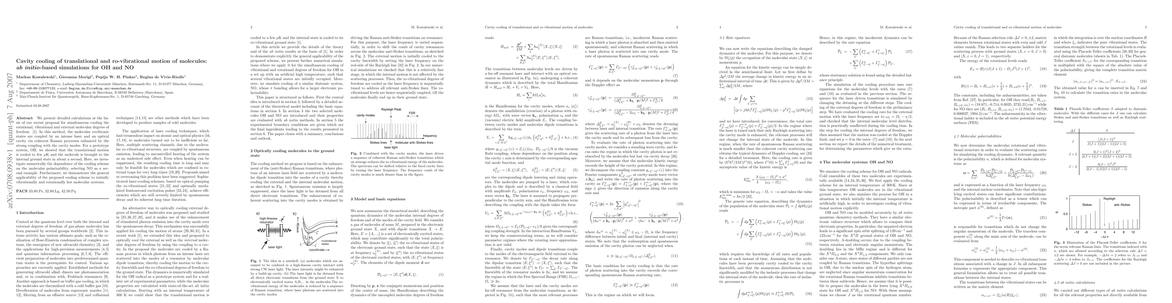 This paper details simulations for cooling molecular translational, vibrational, and rotational motions using an optical cavity and laser. It demonstrates the cooling of OH to micro Kelvin temperatures and extends the method to NO, highlighting its effectiveness on initially excited molecular states.