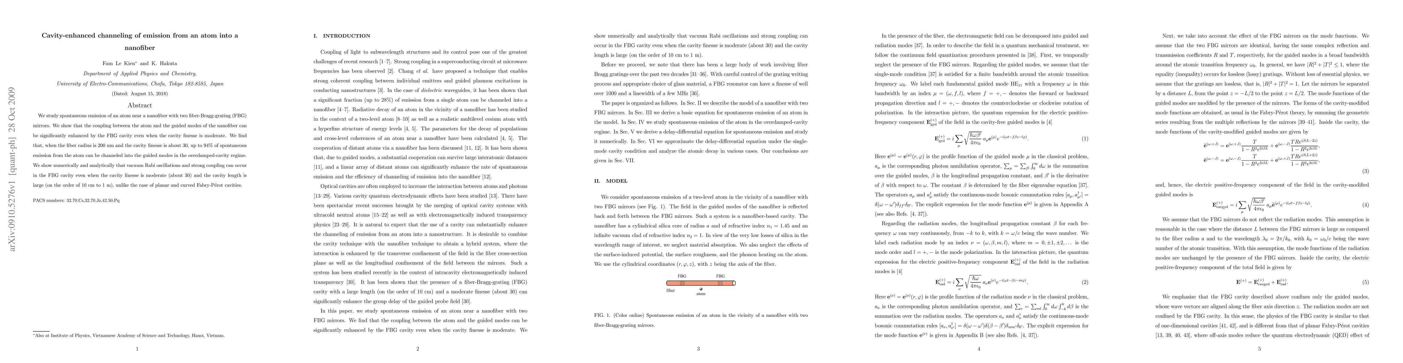 This research demonstrates that an atom's spontaneous emission can be significantly channeled into guided modes of a nanofiber with fiber-Bragg-grating mirrors, achieving up to 94% efficiency in the overdamped-cavity regime. Vacuum Rabi oscillations and strong coupling are shown to occur even with moderate cavity finesse (about 30) and large cavity lengths (10 cm to 1 m).