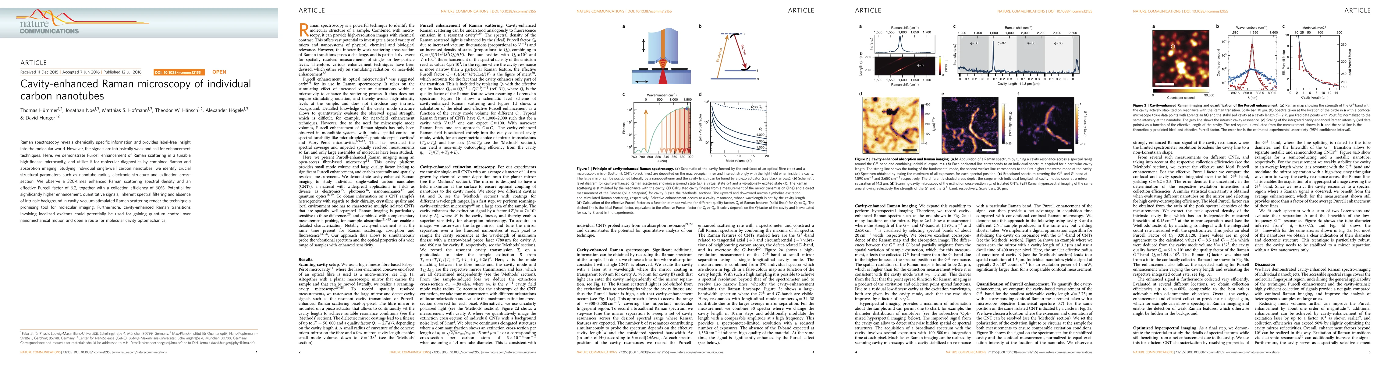 This paper demonstrates a cavity-enhanced Raman microscopy technique for studying individual carbon nanotubes, achieving a 320-times Raman signal enhancement and identifying structural parameters, promising for molecular diagnostics and nanomechanical control. The method also exhibits potential for higher enhancement and quantitative signal acquisition without intrinsic background noise.
