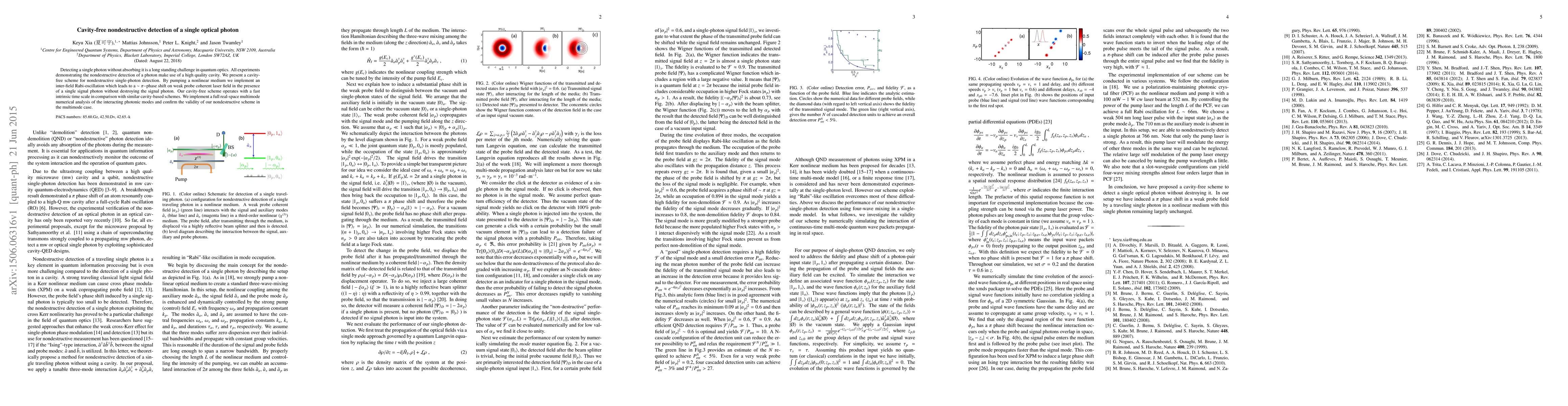 Detecting a single photon without absorbing it is a long standing challenge in quantum optics. All experiments demonstrating the nondestructive detection of a photon make use of a high quality cavity. We present a cavity free scheme for nondestructive single-photon detection. By pumping a nonlinear medium we implement an inter-field Rabi-oscillation which leads to a ?pi phase shift on weak probe coherent laser field in the presence of a single signal photon without destroying the signal photon. Our cavity-free scheme operates with a fast intrinsic time scale in comparison with similar cavity-based schemes. We implement a full real-space multimode numerical analysis of the interacting photonic modes and confirm the validity of our nondestructive scheme in the multimode case.