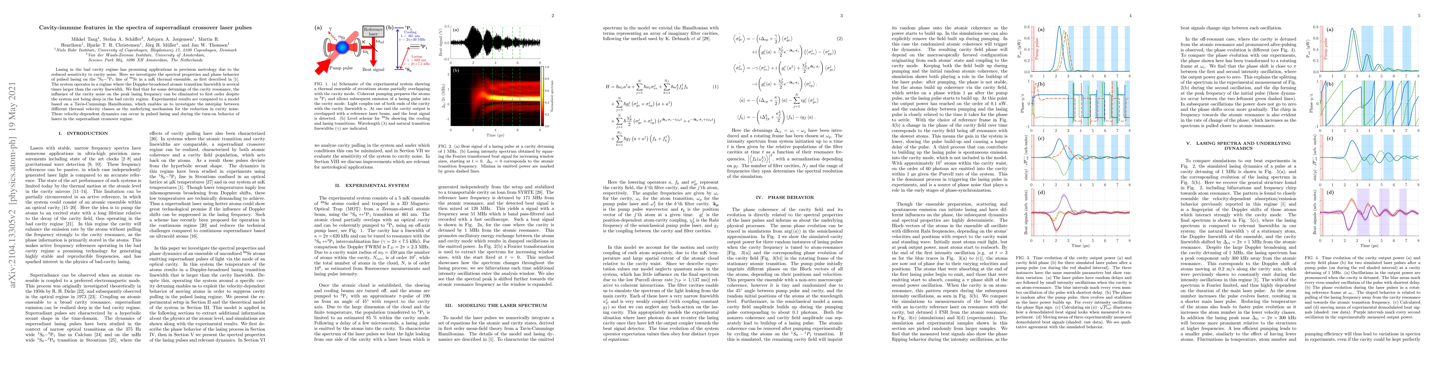 This paper investigates the spectral and phase behavior of pulsed superradiant lasers in a regime where cavity noise is minimized, demonstrating cavity-immune lasing features. The study finds that detuning the cavity resonance can eliminate the influence of cavity noise on the lasing frequency, even when the cavity is not deeply in the bad cavity regime.