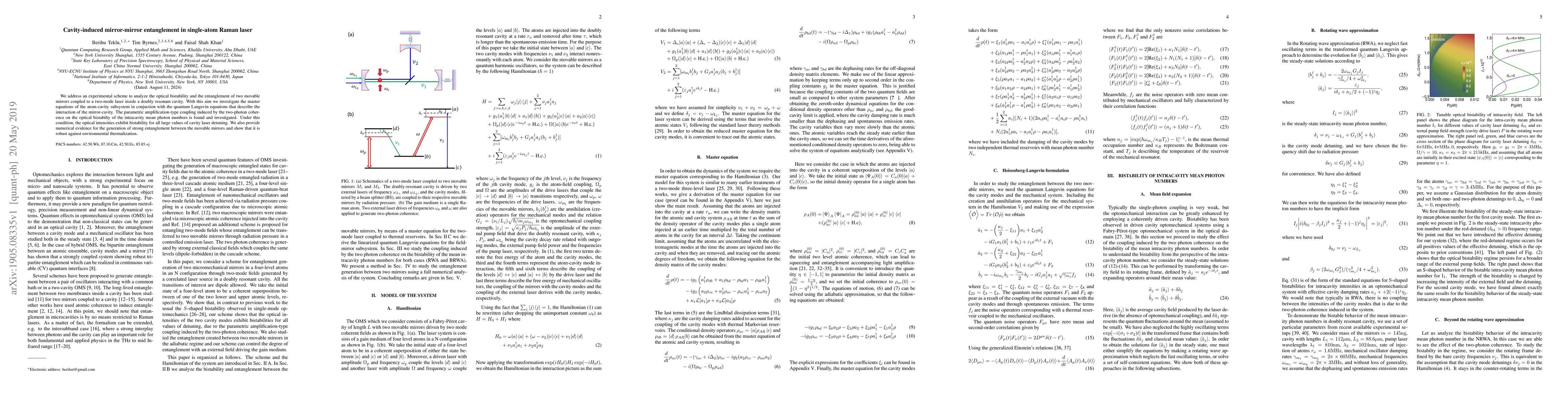 We address an experimental scheme to analyze the optical bistability and the entanglement of two movable mirrors coupled to a two-mode laser inside a doubly resonant cavity. With this aim we investigate the master equations of the atom-cavity subsystem in conjunction with the quantum Langevin equations that describe the interaction of the mirror cavity. The parametric amplification-type coupling induced by the two-photon coherence on the optical bistability of the intracavity mean photon numbers is found and investigated. Under this condition, the optical intensities exhibit bistability for all large values of cavity laser detuning. We also provide numerical evidence for the generation of strong entanglement between the movable mirrors and show that it is robust against environmental thermalization.