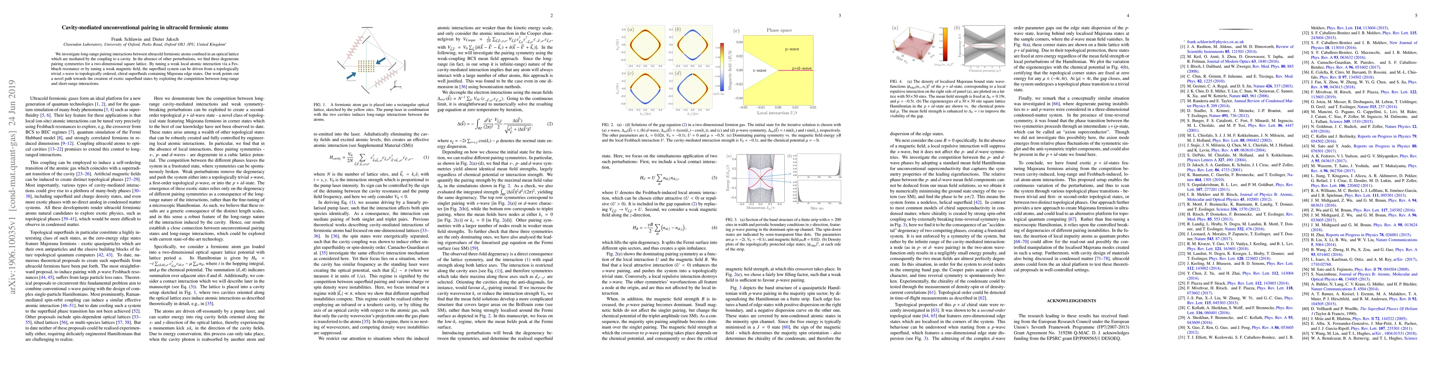This research explores long-range pairing in ultracold fermionic atoms in an optical lattice mediated by a cavity, revealing three degenerate pairing symmetries. The study demonstrates how tuning local interactions or magnetic fields can transition the system from a trivial s-wave to topologically ordered chiral superfluids with Majorana edge states, highlighting a new route to exotic superfluid states.