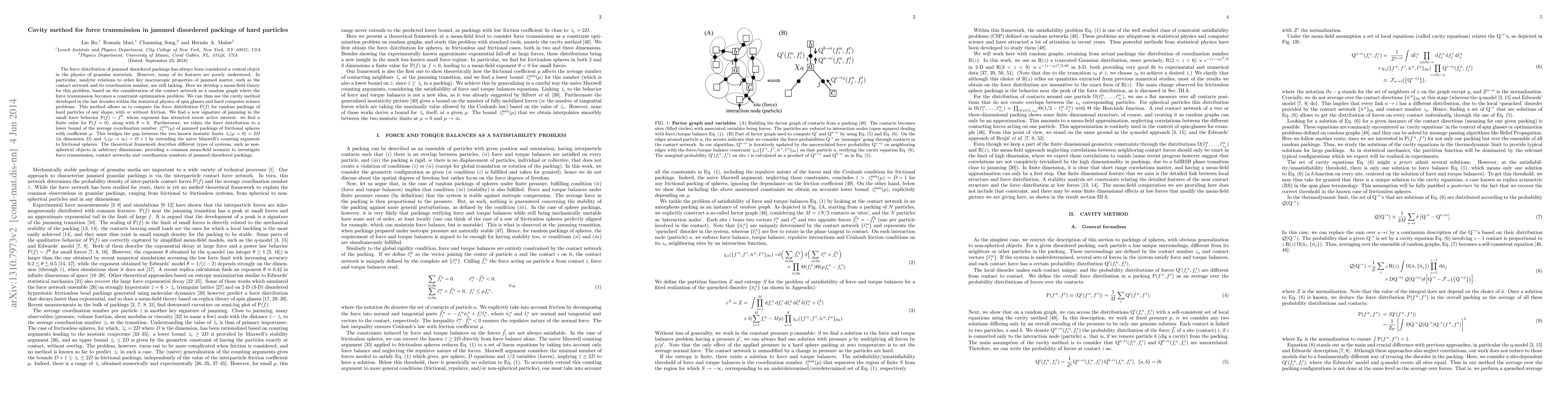 This paper develops a mean-field theory using the cavity method to analyze force distribution in jammed disordered packings of hard particles, revealing a new signature of jamming and bridging the gap between isostatic limits for frictional spheres. The theory provides a finite value for force distribution at zero force and relates it to the average coordination number.