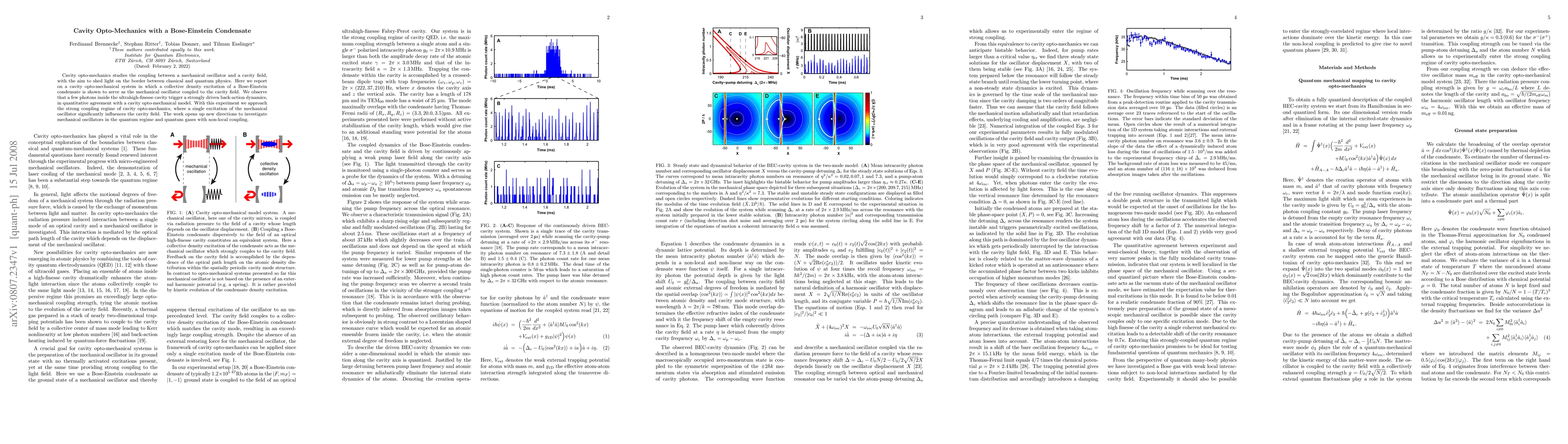 This research demonstrates a cavity opto-mechanical system where a Bose-Einstein condensate acts as a mechanical oscillator, achieving strong coupling between the cavity field and the condensate. The findings suggest potential for exploring quantum regimes of mechanical oscillators and non-local coupling in quantum gases.
