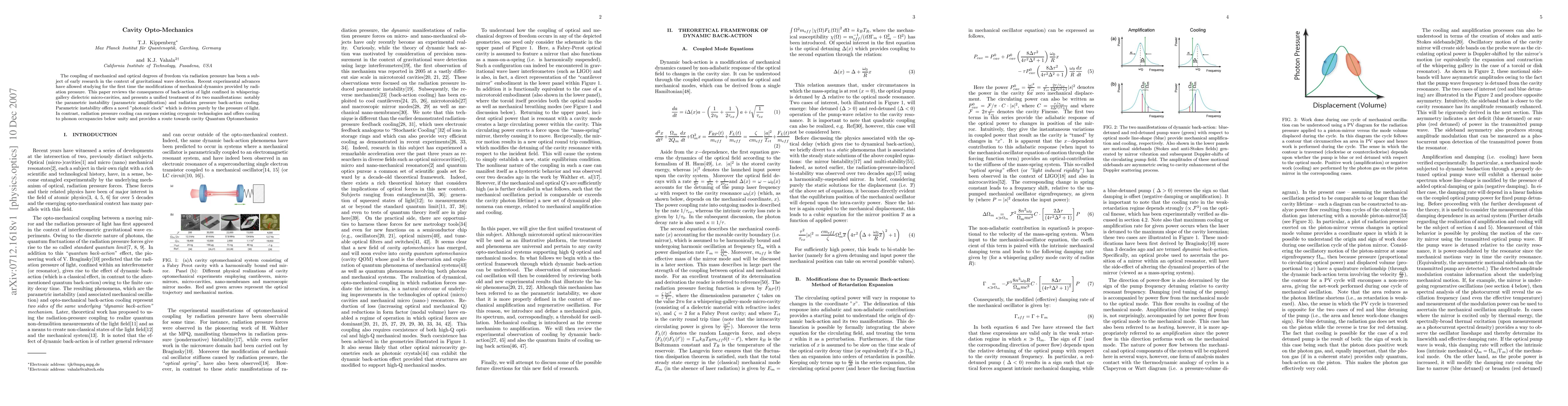 This paper reviews the coupling of mechanical and optical systems in cavity optomechanics, focusing on the effects of light confined in micro-cavities. It highlights two key phenomena: parametric instability leading to a photonic clock and radiation pressure cooling that surpasses cryogenic cooling methods, paving the way for advanced quantum optomechanics.