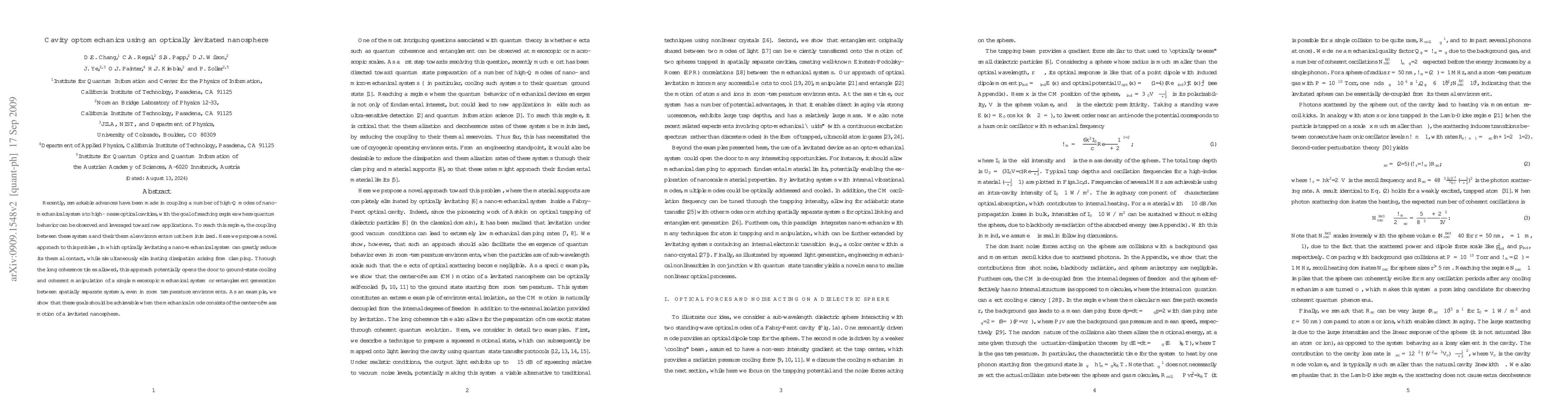 This paper proposes using optically levitated nanospheres to achieve minimal thermal coupling and dissipation in cavity optomechanics, potentially enabling ground-state cooling and quantum manipulation of mesoscopic mechanical systems at room temperature. The approach leverages long coherence times to facilitate entanglement generation between separate systems.