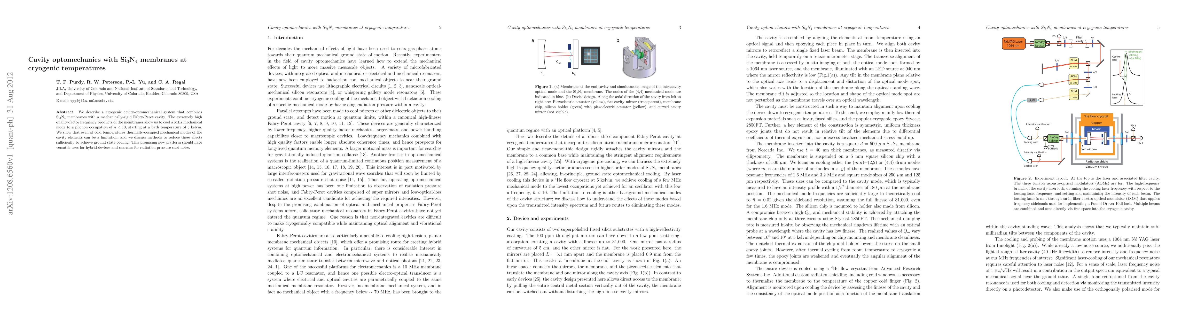 This paper details a cryogenic cavity-optomechanical system utilizing Si3N4 membranes within a Fabry-Perot cavity, achieving ground state cooling of MHz mechanical modes to a phonon occupation below 10 at 5 kelvin. It also addresses the challenges posed by thermally-occupied mechanical modes and proposes methods to mitigate these effects for future hybrid devices and noise research.