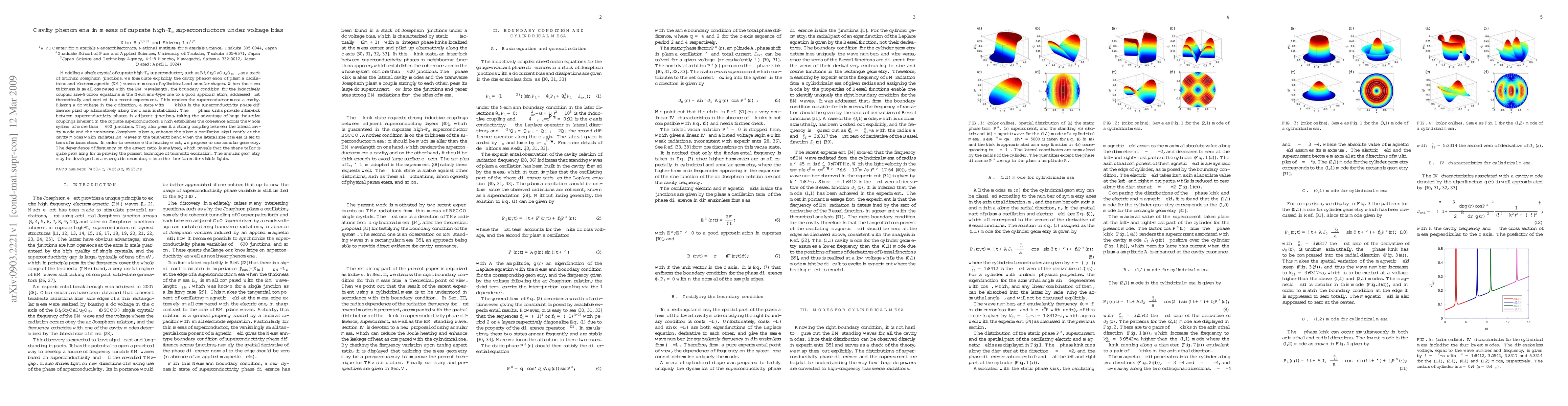 Modeling a single crystal of cuprate high-$T_c$ superconductor, such as $\rm{Bi_2Sr_2CaCu_2O_{8+\delta}}$, as a stack of intrinsic Josephson junctions, we formulate explicitly the cavity phenomenon of plasma oscillations and electromagnetic (EM) waves in mesas of cylindrical and annular shapes. When the mesa thickness is small compared with the EM wavelength, the boundary condition for the inductively coupled sine-Gordon equations is the Neumann-type one to a good approximation, addressed first theoretically and verified in a recent experiment. This renders the superconductor mesa a cavity. Biasing a dc voltage in the $c$ direction, a state with $\pm\pi$ kinks in the superconductivity phase difference piled up alternatively along the c axis is stabilized. The $\pm\pi$ phase kinks provide inter-lock between superconductivity phases in adjacent junctions, taking the advantage of huge inductive couplings inherent in the cuprate superconductors, which establishes the coherence across the whole system of more than $\sim 600$ junctions. They also permit a strong coupling between the lateral cavity mode and the transverse Josephson plasma, enhance the plasma oscillation significantly at the cavity modes which radiates EM waves in the terahertz band when the lateral size of mesa is set to tens of micrometers. In order to overcome the heating effect, we propose to use annular geometry. The dependence of frequency on the aspect ratio is analyzed, which reveals that the shape tailor is quite promising for improving the present technique of terahertz excitation. The annular geometry may be developed as a waveguide resonator, mimic the fiber lasers for visible lights.