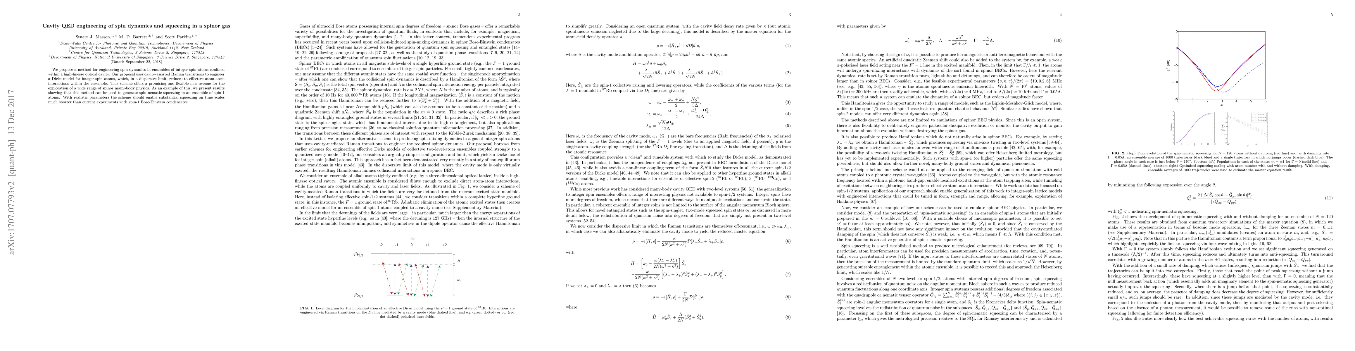 This paper proposes a method for manipulating spin dynamics in integer-spin atom ensembles using cavity QED to engineer a Dicke model, enabling atom-atom interactions. It demonstrates the potential for generating spin-nematic squeezing in spin-1 atoms, offering a promising approach for spinor many-body physics studies.