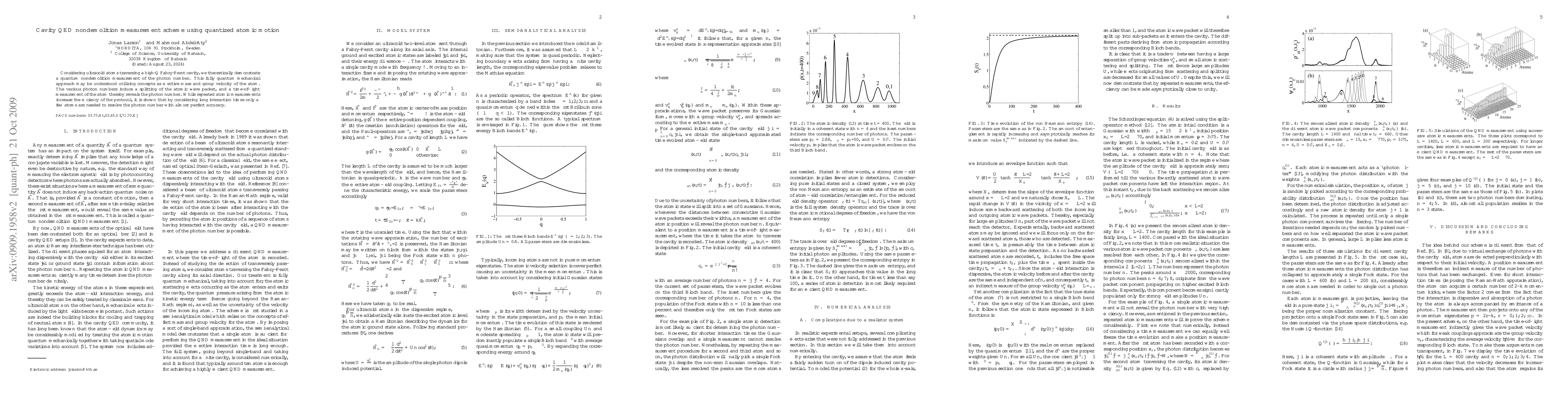 The paper proposes a quantum nondemolition measurement scheme using ultracold atoms in a high-Q Fabry-Perot cavity to determine photon number through quantized atomic motion, utilizing effective mass and group velocity concepts. Long interaction times with few atoms are sufficient to achieve near-perfect photon number resolution.