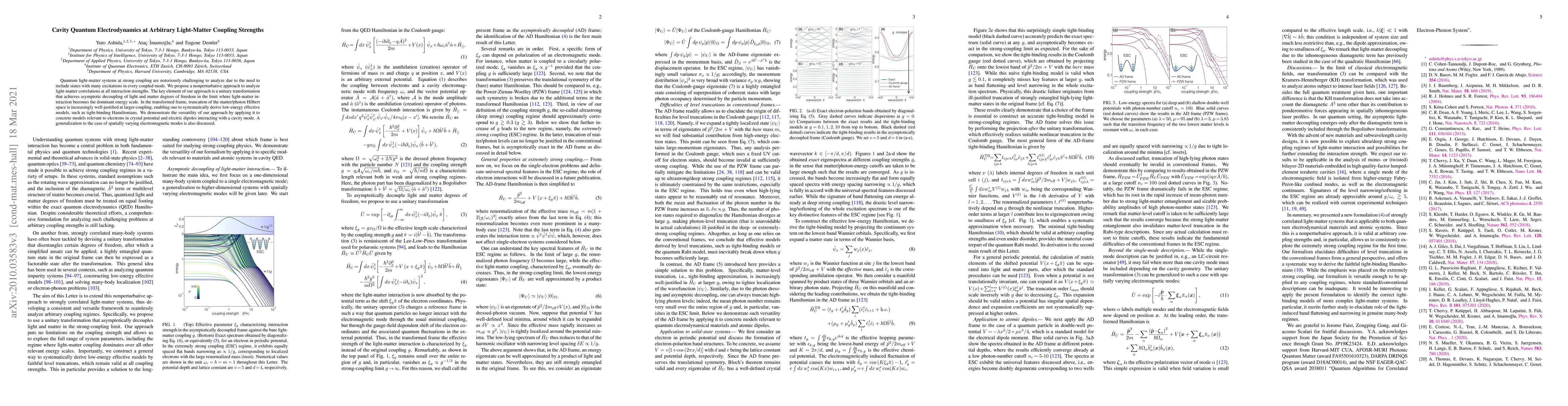 This paper proposes a nonperturbative method to analyze light-matter interactions across all coupling strengths, utilizing a unitary transformation to achieve decoupling and enabling truncation of the Hilbert space for effective low-energy models. The approach is demonstrated on models of electrons in crystal potentials and electric dipoles in cavity modes.