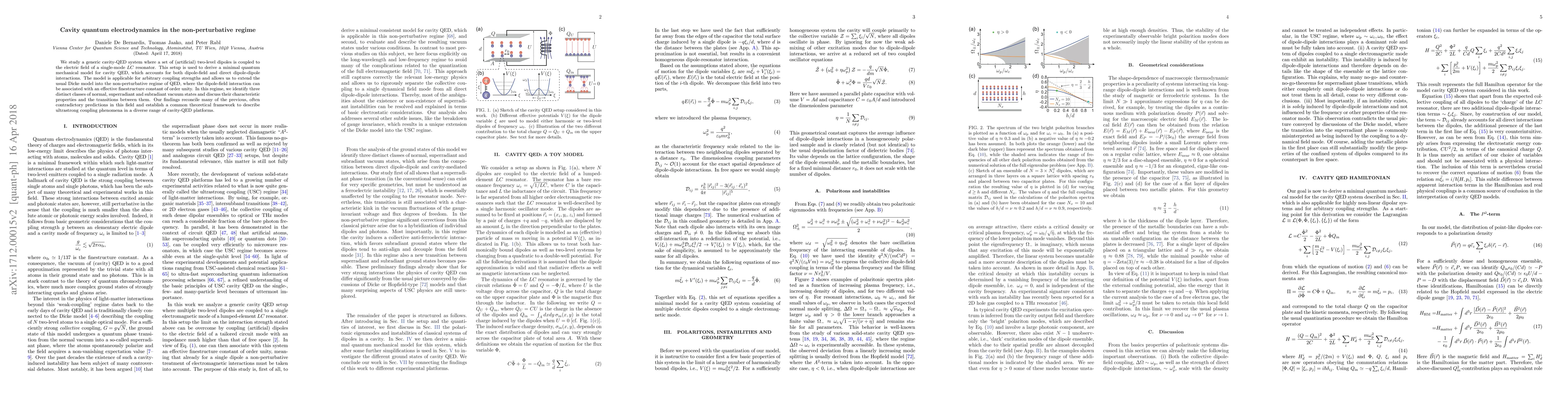 We study a generic cavity-QED system where a set of (artificial) two-level dipoles is coupled to the electric field of a single-mode LC resonator. This setup is used to derive a minimal quantum mechanical model for cavity QED, which accounts for both dipole-field and direct dipole-dipole interactions. The model is applicable for arbitrary coupling strengths and allows us to extend the usual Dicke model into the non-perturbative regime of QED, where the dipole-field interaction can be associated with an effective finestructure constant of order unity. In this regime, we identify three distinct classes of normal, superradiant and subradiant vacuum states and discuss their characteristic properties and the transitions between them. Our findings reconcile many of the previous, often contradictory predictions in this field and establish a common theoretical framework to describe ultrastrong coupling phenomena in a diverse range of cavity-QED platforms.