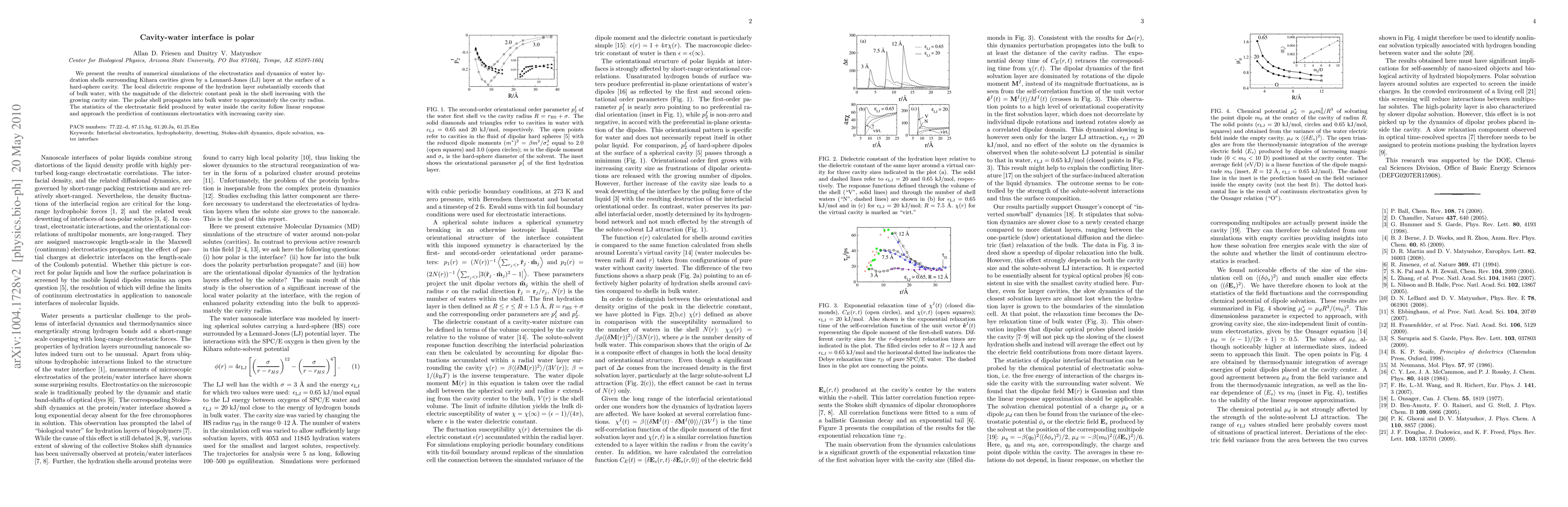 We present the results of numerical simulations of the electrostatics and dynamics of water hydration shells surrounding Kihara cavities given by a Lennard-Jones (LJ) layer at the surface of a hard-sphere cavity. The local dielectric response of the hydration layer substantially exceeds that of bulk water, with the magnitude of the dielectric constant peak in the shell increasing with the growing cavity size. The polar shell propagates into bulk water to approximately the cavity radius. The statistics of the electrostatic field produced by water inside the cavity follow linear response and approach the prediction of continuum electrostatics with increasing cavity size.