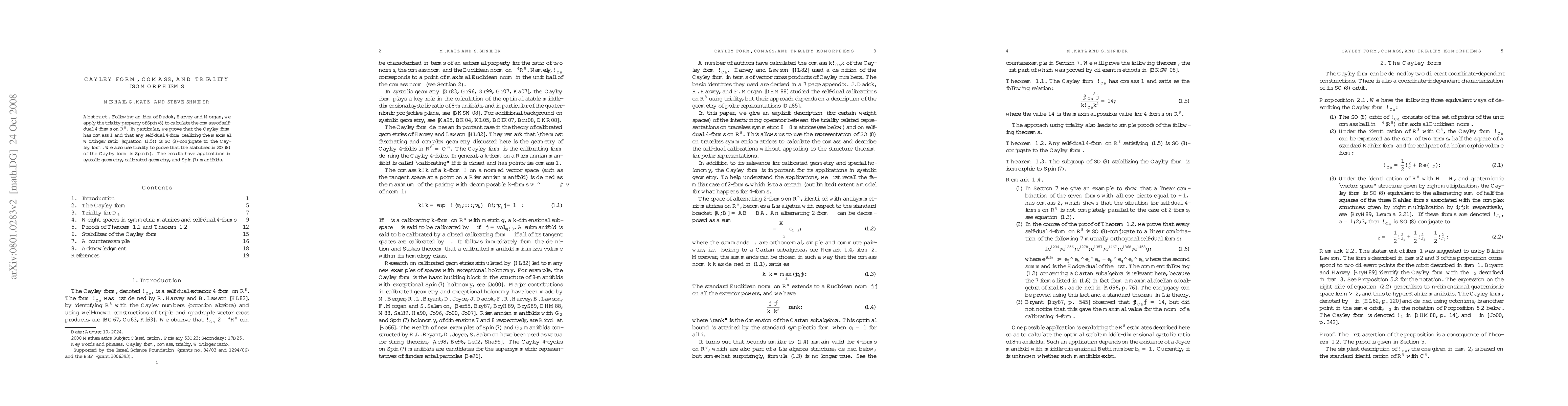 The paper establishes a connection between triality isomorphisms and the comass of self-dual forms, providing a detailed analysis of the Cayley 4-form's properties.