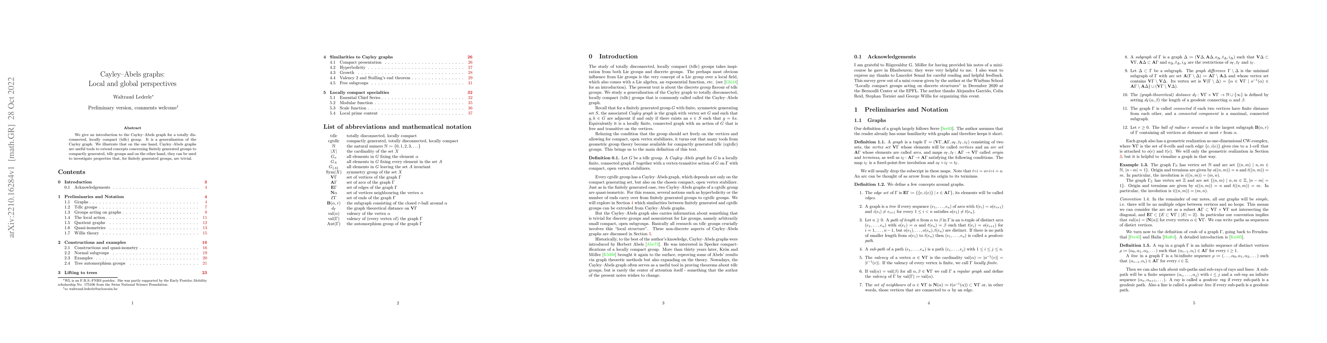 Summary: This paper introduces Cayley-Abels graphs for totally disconnected, locally compact (tdlc) groups, extending concepts from finitely generated groups and investigating properties that are trivial in such groups. It serves as a useful tool for both local and global perspectives on tdlc groups.
