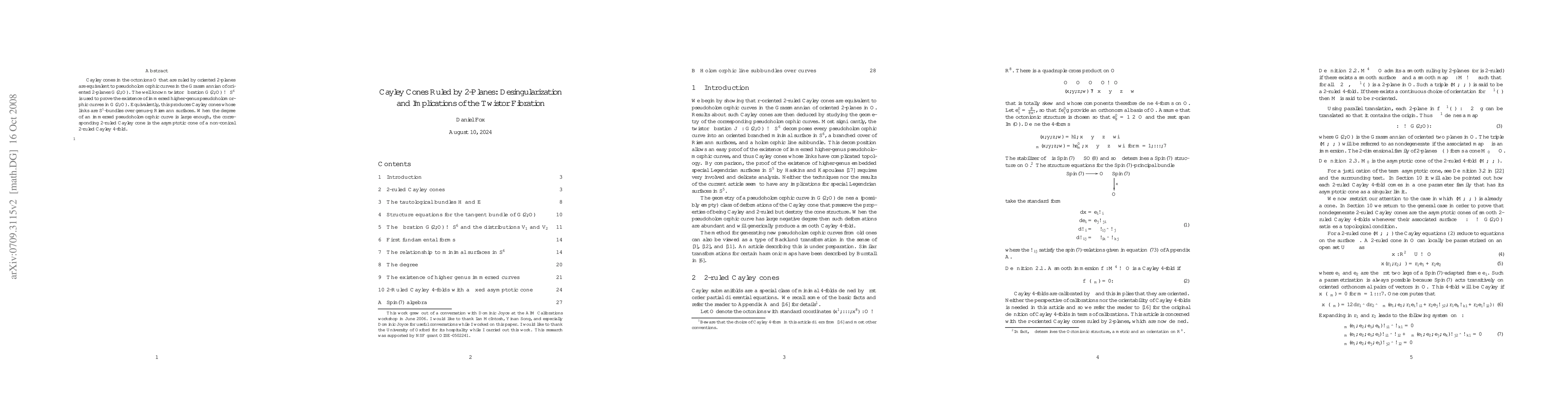 Cayley cones in the octonions $\mathbb{O}$ that are ruled by oriented 2-planes are equivalent to pseudoholomorphic curves in the Grassmannian of oriented 2-planes G(2,8). The well known twistor fibration $G(2,8) -> S^6$ is used to prove the existence of immersed higher-genus pseudoholomorphic curves in $\gro$. Equivalently, this produces Cayley cones whose links are $S^1$-bundles over genus-$g$ Riemann surfaces. When the degree of an immersed pseudoholomorphic curve is large enough, the corresponding 2-ruled Cayley cone is the asymptotic cone of a non-conical 2-ruled Cayley 4-fold.