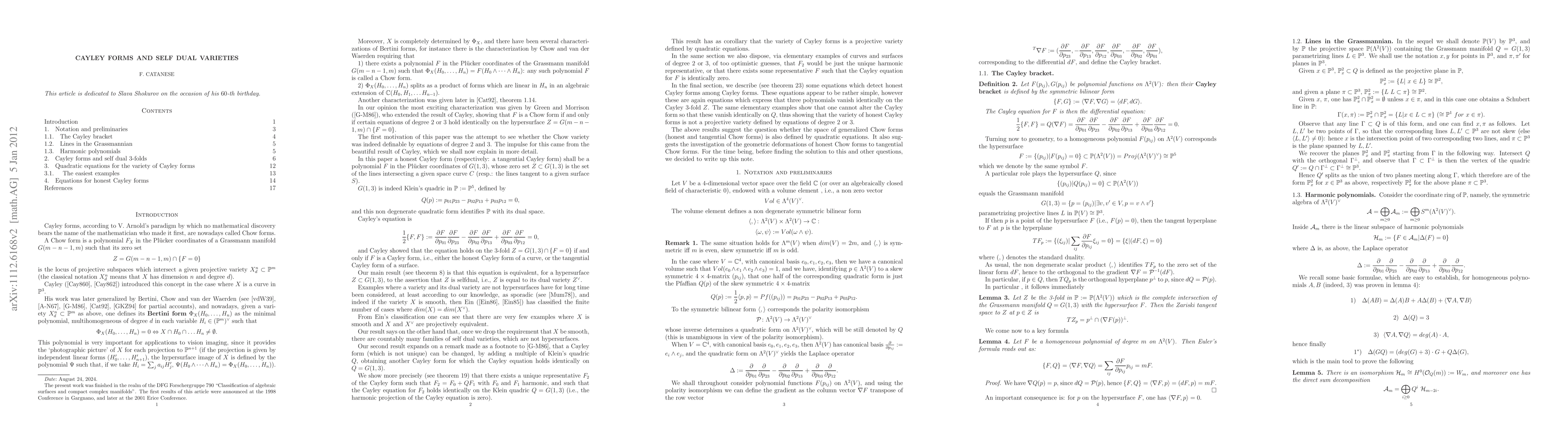This paper establishes conditions for a generalized Cayley form to exist, showing that such a form is self-dual if and only if its zero set equals its dual variety. It further demonstrates that the variety of generalized Cayley forms is defined by quadratic equations, contrasting with the non-quadratic nature of the variety for honest Cayley forms.