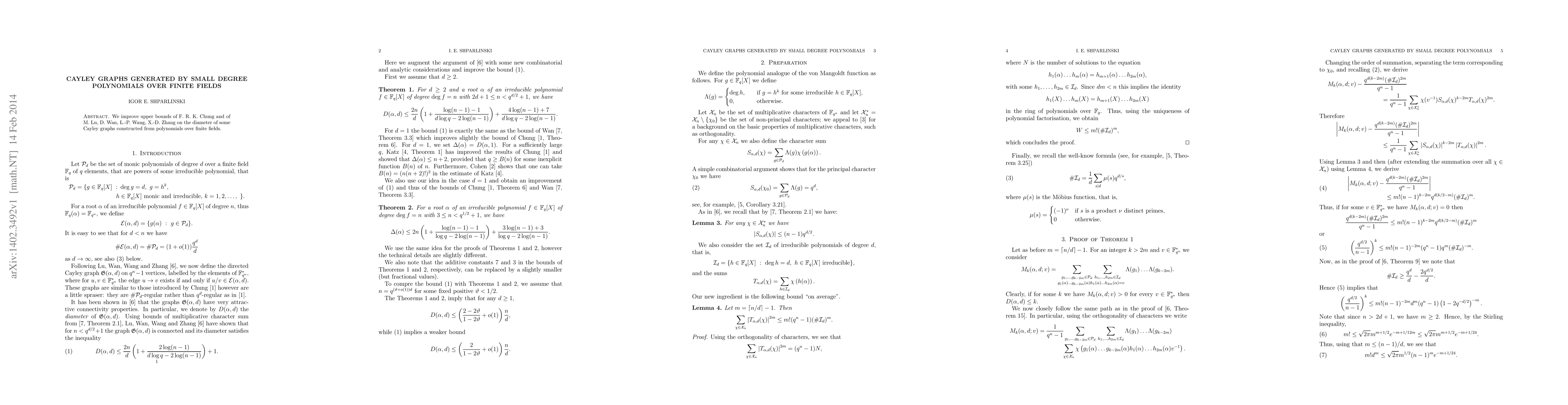 This paper enhances previous upper bounds for the diameter of Cayley graphs generated by specific degree polynomials over finite fields, improving results established by Chung and by Lu, Wan, Wang, and Zhang.