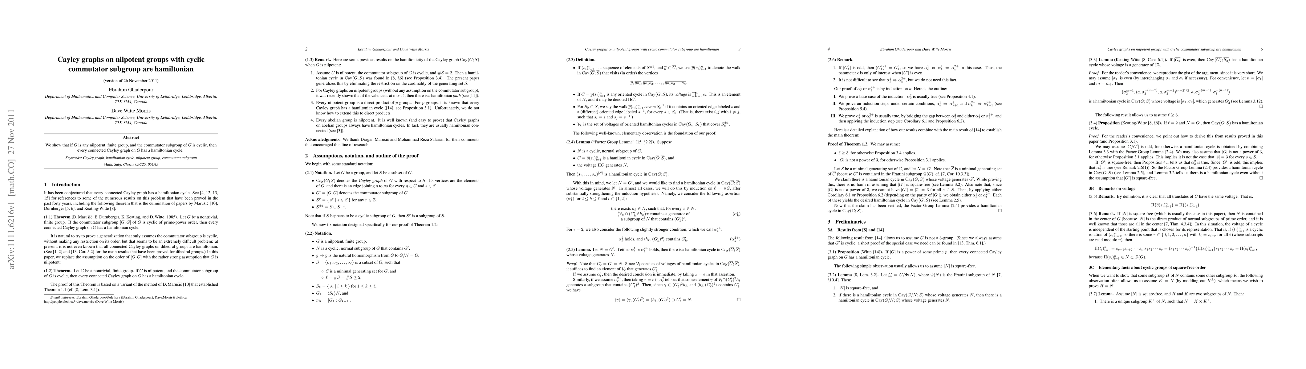 We show that if G is any nilpotent, finite group, and the commutator subgroup of G is cyclic, then every connected Cayley graph on G has a hamiltonian cycle.