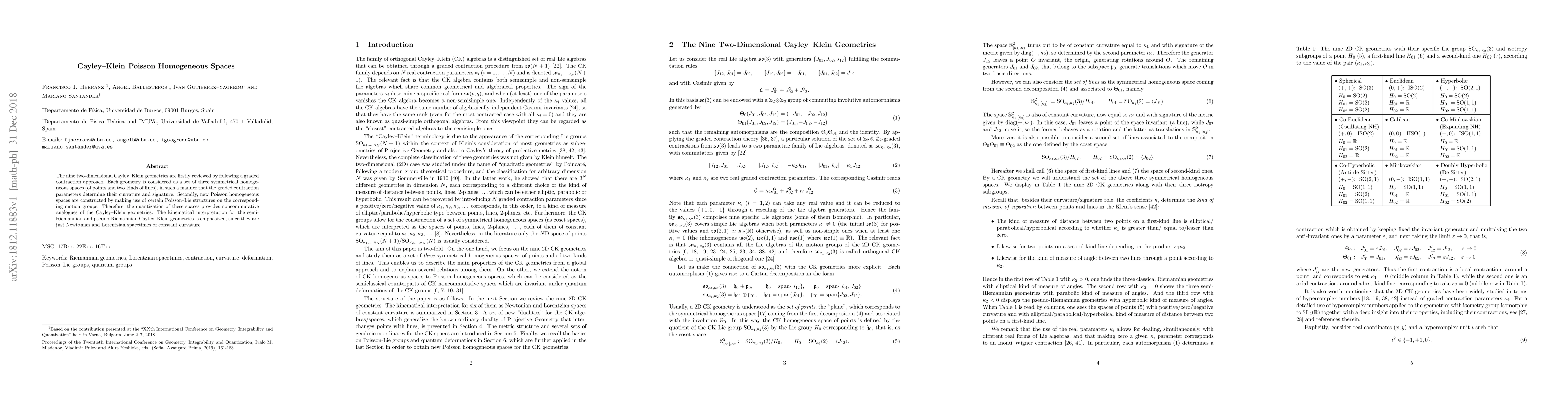 This paper reviews the nine two-dimensional Cayley-Klein geometries through a graded contraction approach, identifying each as a set of three symmetrical homogeneous spaces. It also constructs new Poisson homogeneous spaces using Poisson-Lie structures, providing noncommutative analogues of these geometries, with a focus on their kinematical interpretations as Newtonian and Lorentzian spacetimes.