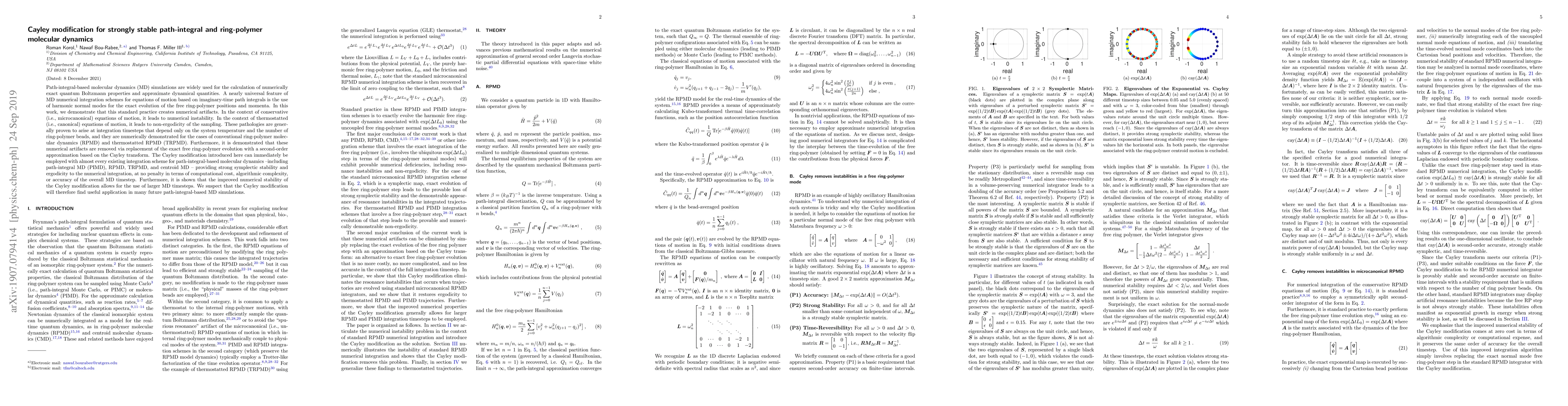 Path-integral-based molecular dynamics (MD) simulations are widely used for the calculation of numerically exact quantum Boltzmann properties and approximate dynamical quantities. A nearly universal feature of MD numerical integration schemes for equations of motion based on imaginary-time path integrals is the use of harmonic normal modes for the exact evolution of the free ring-polymer positions and momenta. In this work, we demonstrate that this standard practice creates numerical artifacts. In the context of conservative (i.e., microcanonical) equations of motion, it leads to numerical instability. In the context of thermostatted (i.e., canonical) equations of motion, it leads to non-ergodicity of the sampling. These pathologies are generally proven to arise at integration timesteps that depend only on the system temperature and the number of ring-polymer beads, and they are numerically demonstrated for the cases of conventional ring-polymer molecular dynamics (RPMD) and thermostatted RPMD (TRPMD). Furthermore, it is demonstrated that these numerical artifacts are removed via replacement of the exact free ring-polymer evolution with a second-order approximation based on the Cayley transform. The Cayley modification introduced here can immediately be employed with almost every existing integration scheme for path-integral-based molecular dynamics - including path-integral MD (PIMD), RPMD, TRPMD, and centroid MD - providing strong symplectic stability and ergodicity to the numerical integration, at no penalty in terms of computational cost, algorithmic complexity, or accuracy of the overall MD timestep. Furthermore, it is shown that the improved numerical stability of the Cayley modification allows for the use of larger MD timesteps. We suspect that the Cayley modification will therefore find useful application in many future path-integral-based MD simulations.