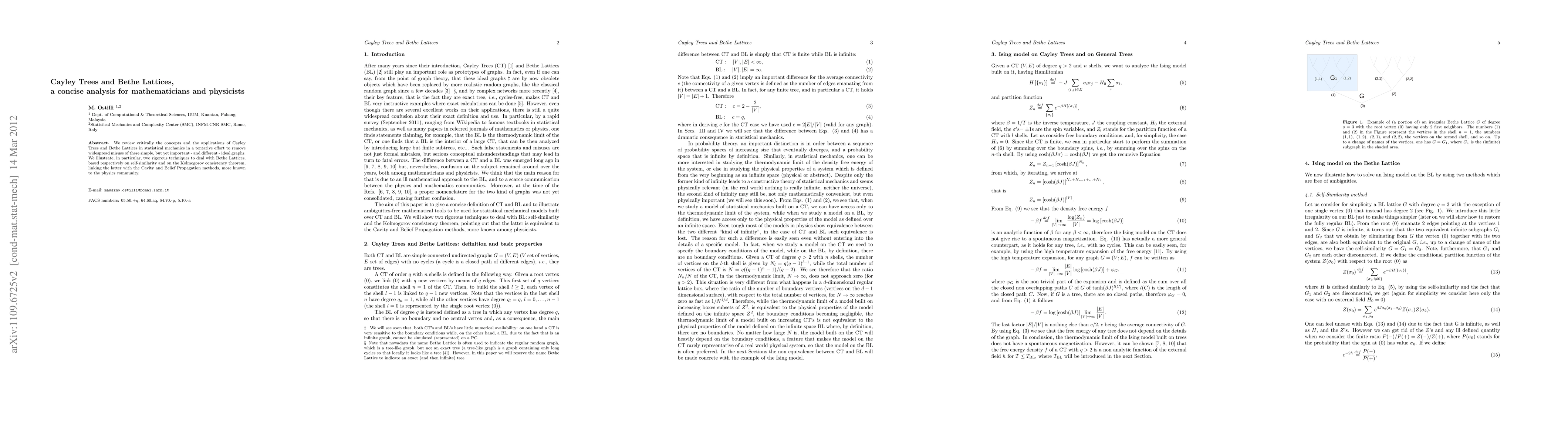 This paper reviews Cayley Trees and Bethe Lattices, highlighting their differences in statistical mechanics and introducing two rigorous techniques to analyze them, including self-similarity and the Kolmogorov consistency theorem.