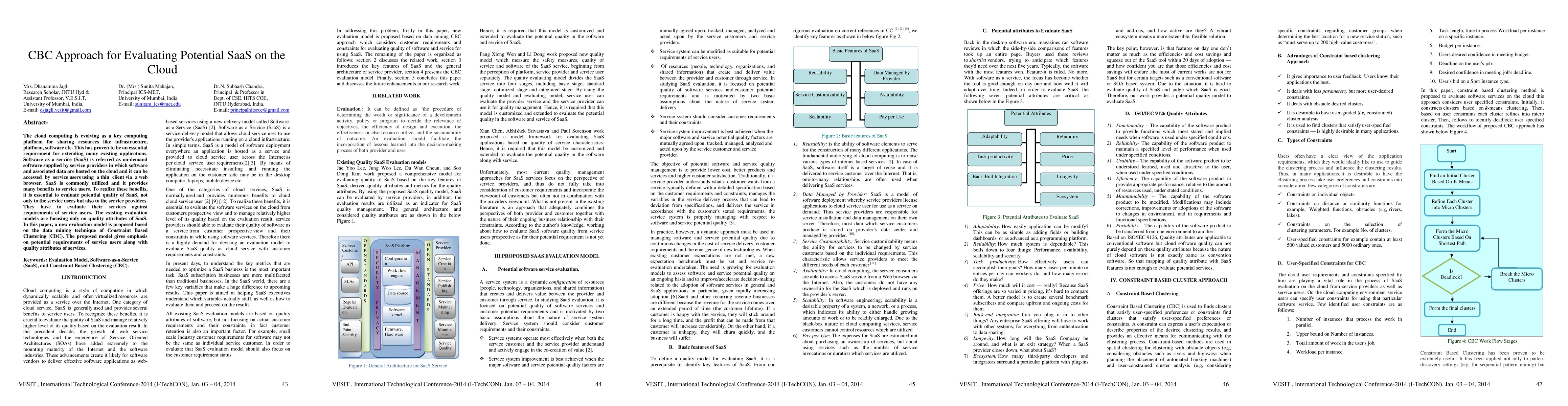 This paper proposes a new evaluation model using Constraint Based Clustering (CBC) for assessing potential Software as a Service (SaaS) on the cloud, focusing on both quality attributes and user requirements to benefit both service providers and users.