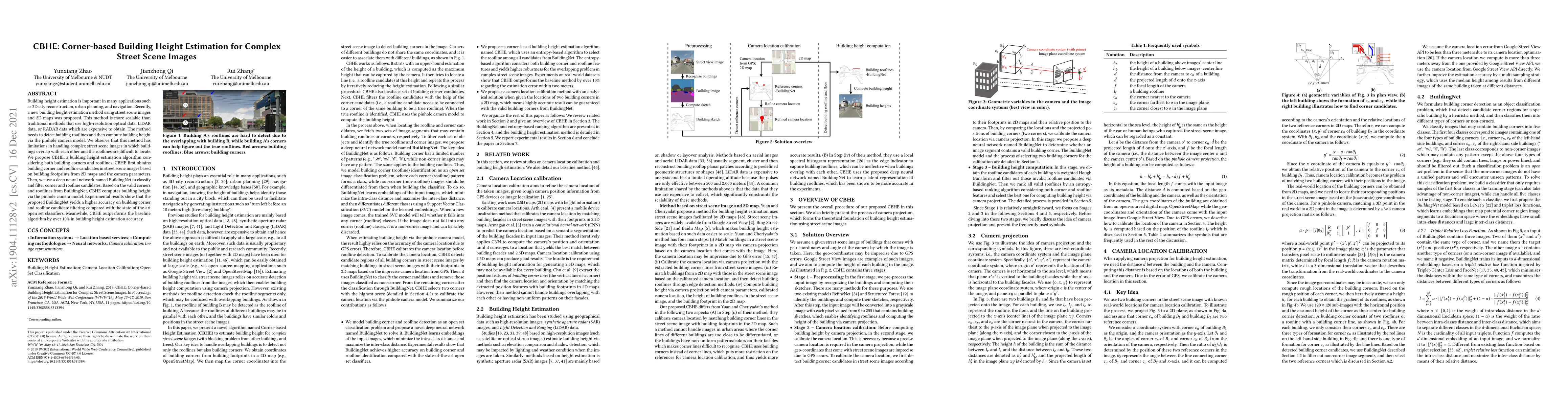 The paper proposes CBHE, a scalable building height estimation method using street scene images and 2D maps, which improves upon existing methods by incorporating both building corners and rooflines. CBHE employs a deep neural network, BuildingNet, to classify and filter candidates, leading to a 10% increase in accuracy over baseline algorithms.