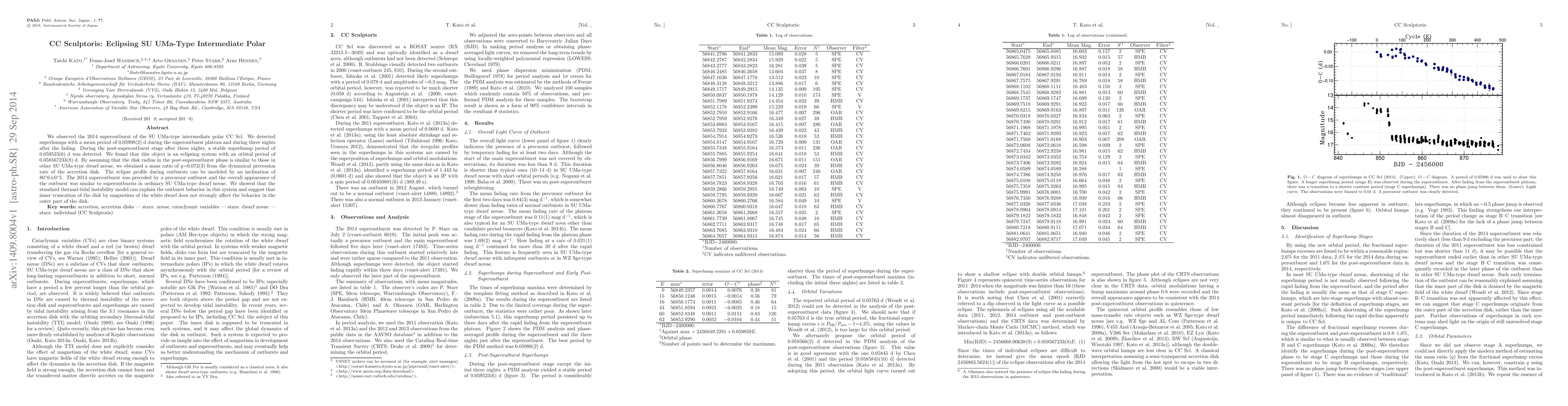 The research paper describes a superoutburst of CC Scl, an eclipsing SU UMa-type intermediate polar, and found that the system's behavior can be explained by thermal-tidal instability, suggesting inner disk truncation is not a dominant factor in this case.