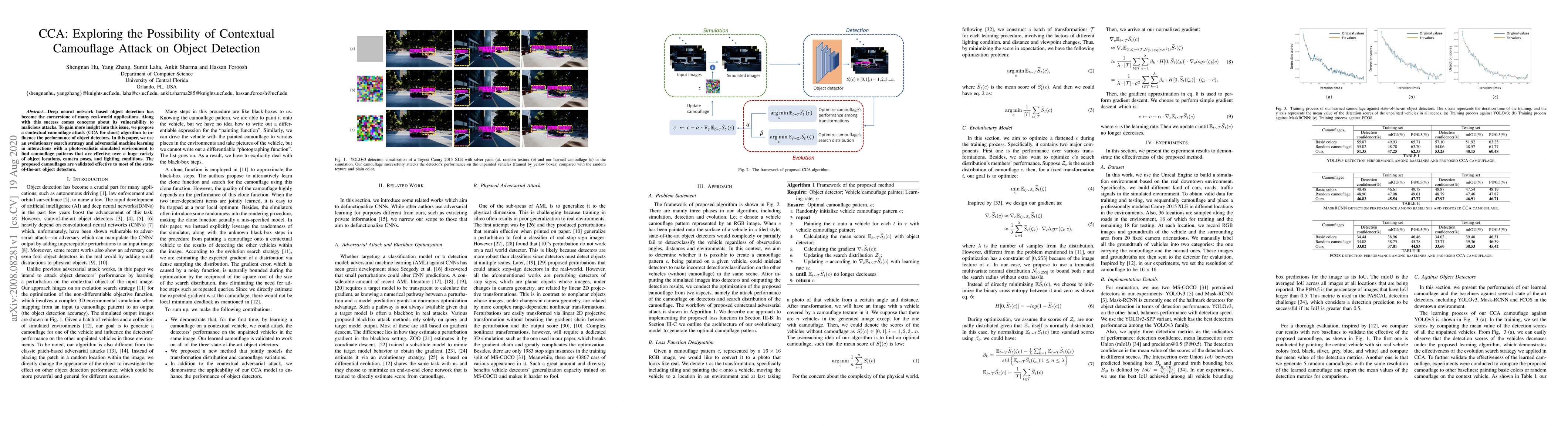 This paper proposes a contextual camouflage attack (CCA) algorithm to exploit vulnerabilities in deep neural network-based object detectors. Using an evolutionary search strategy and adversarial machine learning, the authors develop camouflage patterns that remain effective across diverse object locations, camera poses, and lighting conditions, demonstrating their effectiveness against state-of-the-art detectors.