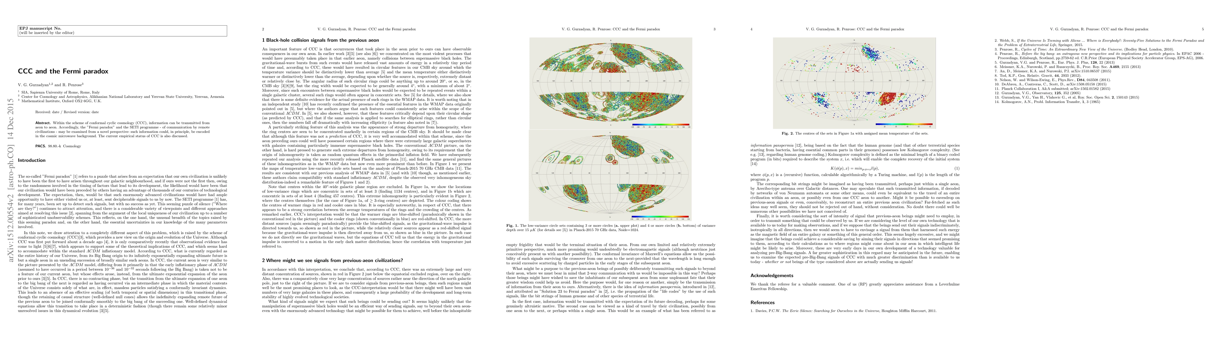 This paper explores the Fermi paradox within the framework of conformal cyclic cosmology (CCC), suggesting that information from ancient civilizations could be encoded in the cosmic microwave background. The paper also reviews the current empirical status of CCC.