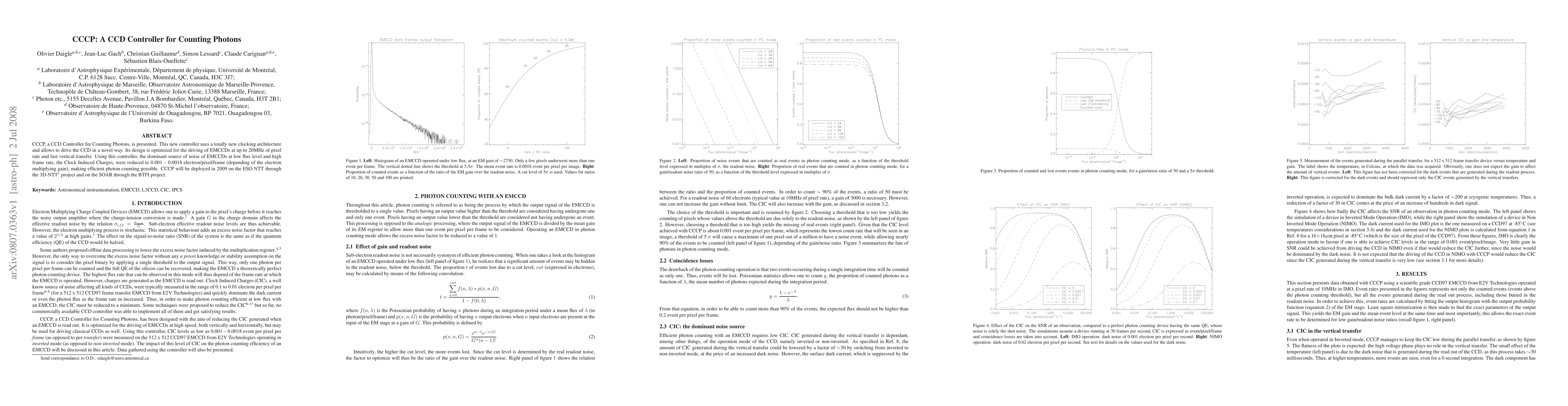 CCCP, a CCD Controller for Counting Photons, is presented. This new controller uses a totally new clocking architecture and allows to drive the CCD in a novel way. Its design is optimized for the driving of EMCCDs at up to 20MHz of pixel rate and fast vertical transfer. Using this controller, the dominant source of noise of EMCCDs at low flux level and high frame rate, the Clock Induced Charges, were reduced to 0.001 - 0.0018 electron/pixel/frame (depending of the electron multiplying gain), making efficient photon counting possible. CCCP will be deployed in 2009 on the ESO NTT through the 3D-NTT1 project and on the SOAR through the BTFI project.