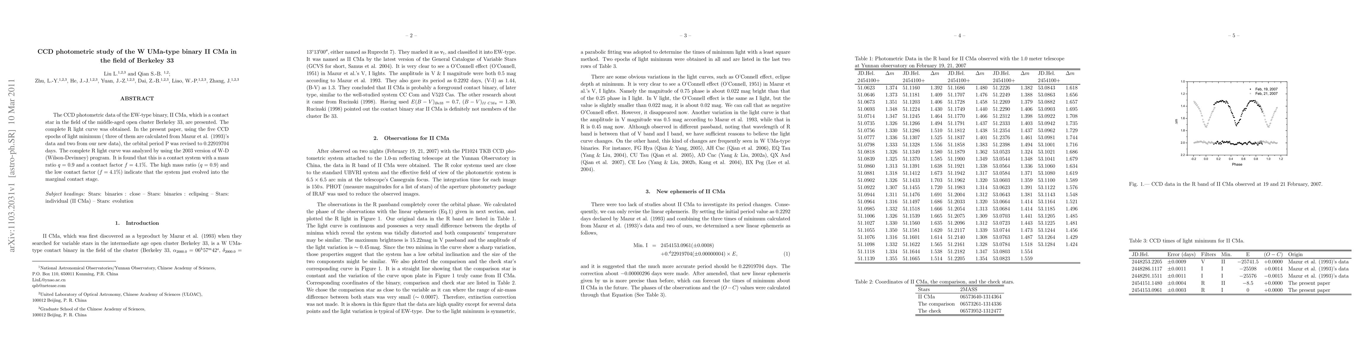 The CCD photometric data of the EW-type binary, II CMa, which is a contact star in the field of the middle-aged open cluster Berkeley 33, are presented. The complete R light curve was obtained. In the present paper, using the five CCD epochs of light minimum (three of them are calculated from Mazur et al. (1993)'s data and two from our new data), the orbital period P was revised to 0.22919704 days. The complete R light curve was analyzed by using the 2003 version of W-D (Wilson-Devinney) program. It is found that this is a contact system with a mass ratio $q=0.9$ and a contact factor $f=4.1%$. The high mass ratio ($q=0.9$) and the low contact factor ($f=4.1%$) indicate that the system just evolved into the marginal contact stage.