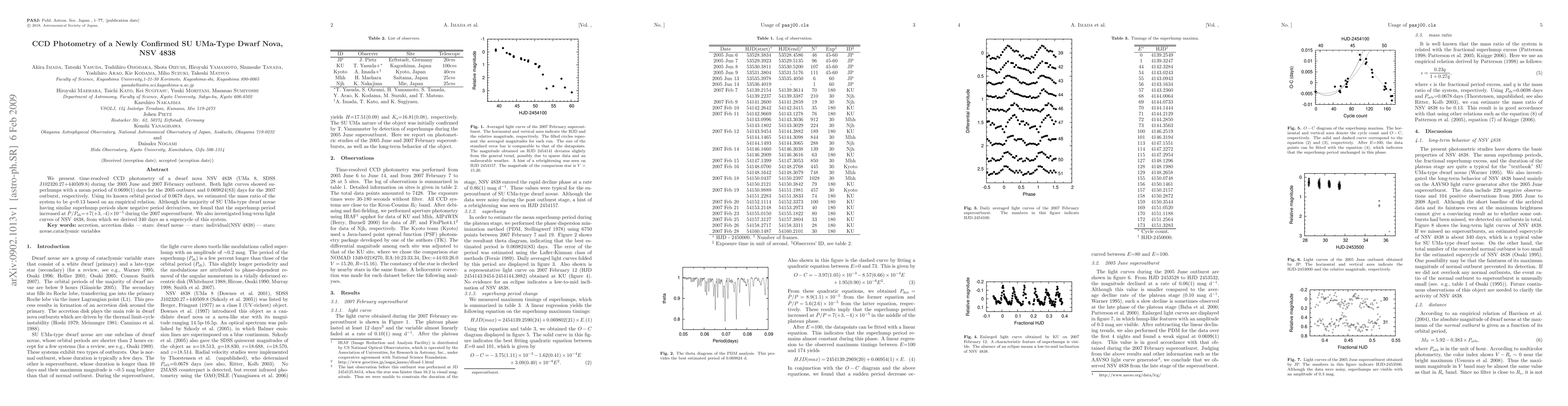 This study presents CCD photometry of the SU UMa-type dwarf nova NSV 4838 during its 2005 and 2007 outbursts, revealing superhumps with periods of 0.0699 and 0.0698 days, respectively. The mass ratio of the system was estimated to be 0.13.