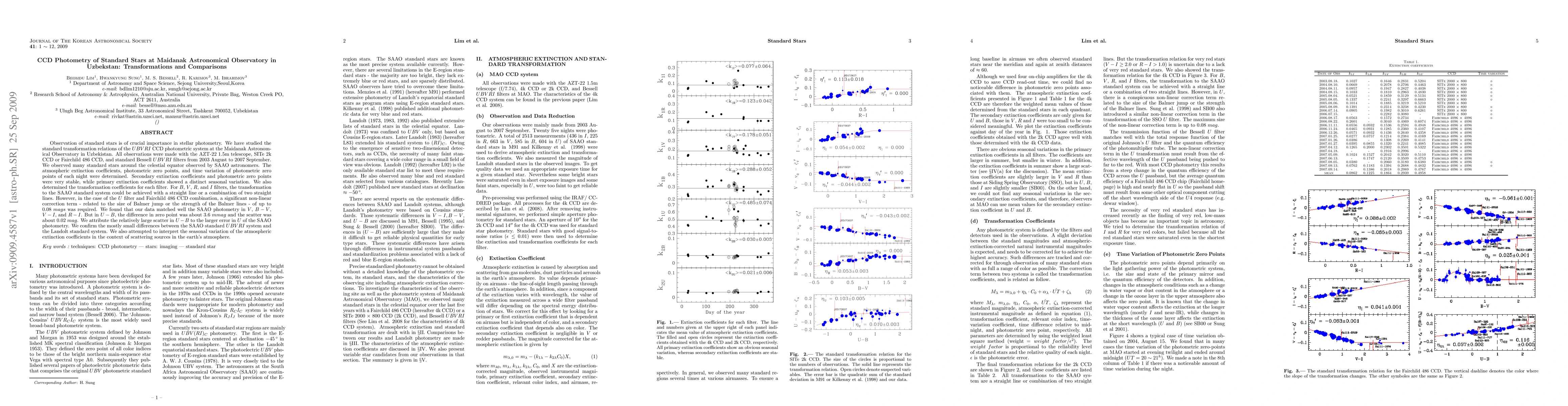This study investigates the standard transformation relations for the UBVRI CCD photometric system at Maidanak Astronomical Observatory, Uzbekistan, using the AZT-22 telescope and various CCDs. The research found stable secondary extinction coefficients and a seasonal variation in primary extinction coefficients, with a significant non-linear correction needed for the U filter. The results show good agreement with SAAO photometry in most bands but a notable discrepancy in U-B.