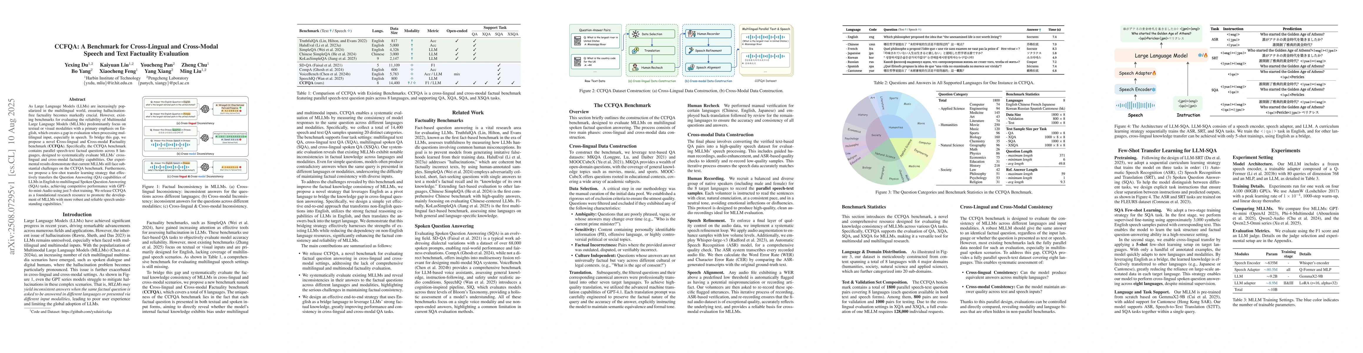 Unlike existing benchmarks that focus predominantly on English and textual or visual modalities, CCFQA covers 8 languages and systematically evaluates MLLMs' cross-lingual and cross-modal factuality capabilities.